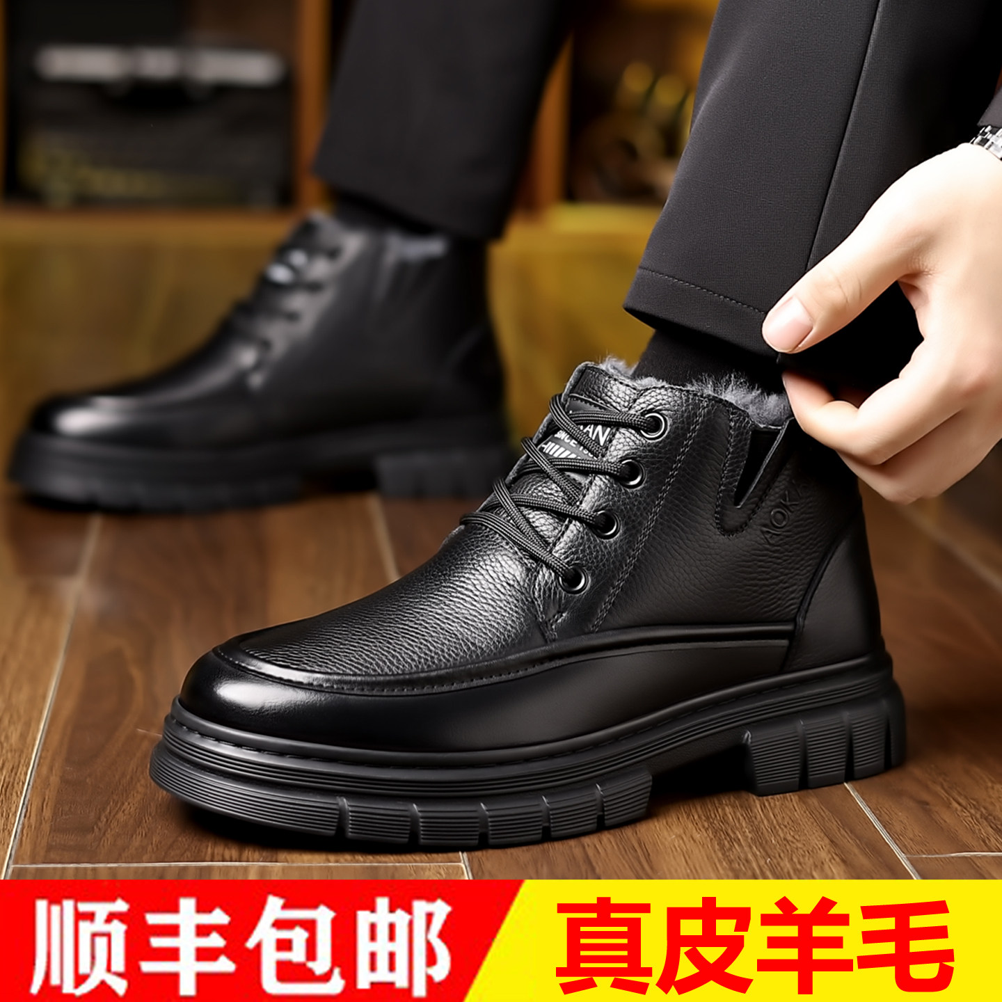 木林森木林森头层牛皮男鞋2025冬季加绒加厚羊皮毛一体保暖棉皮鞋