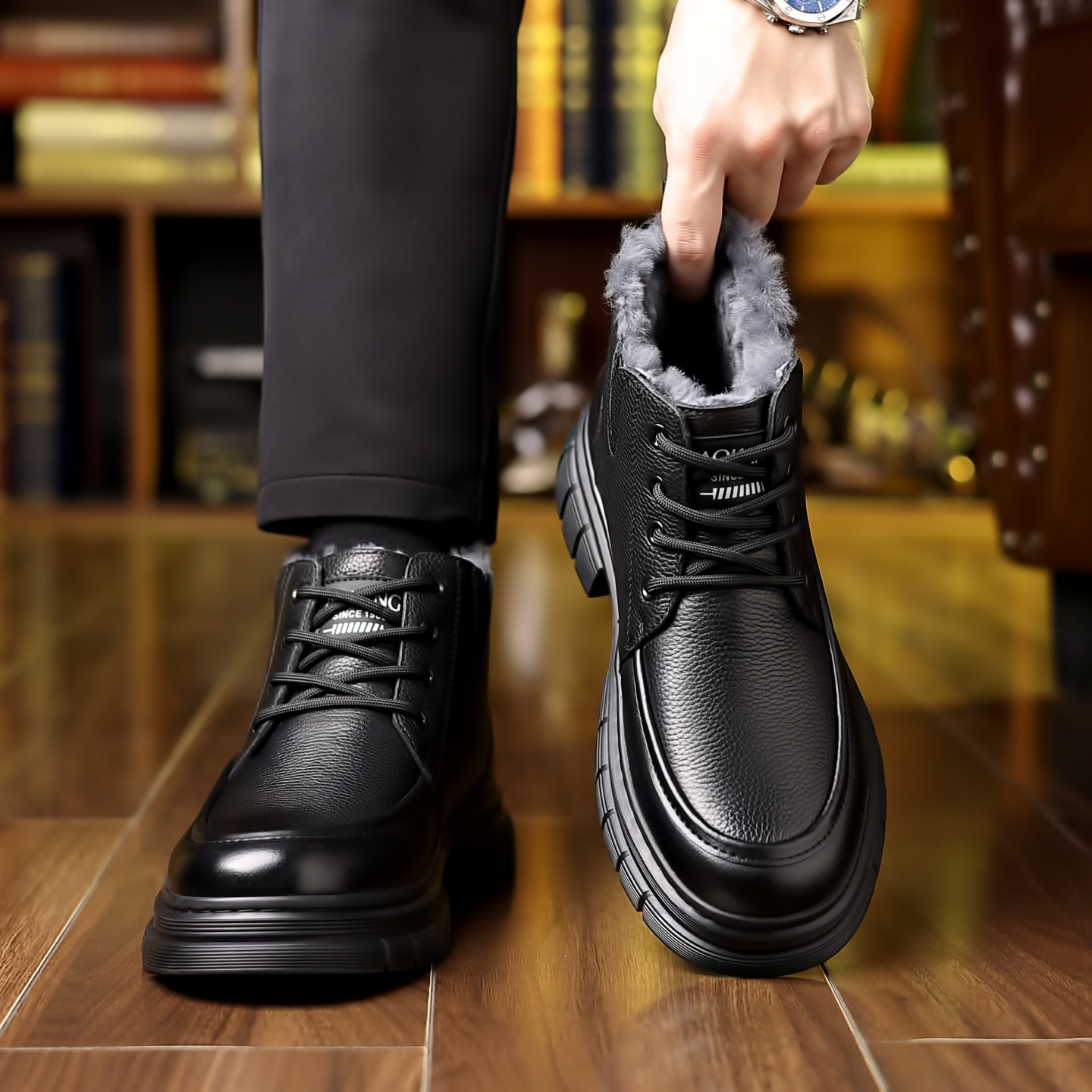外贸男鞋冬季保暖高帮休闲皮鞋男真皮商务加绒加厚马丁靴男士棉鞋