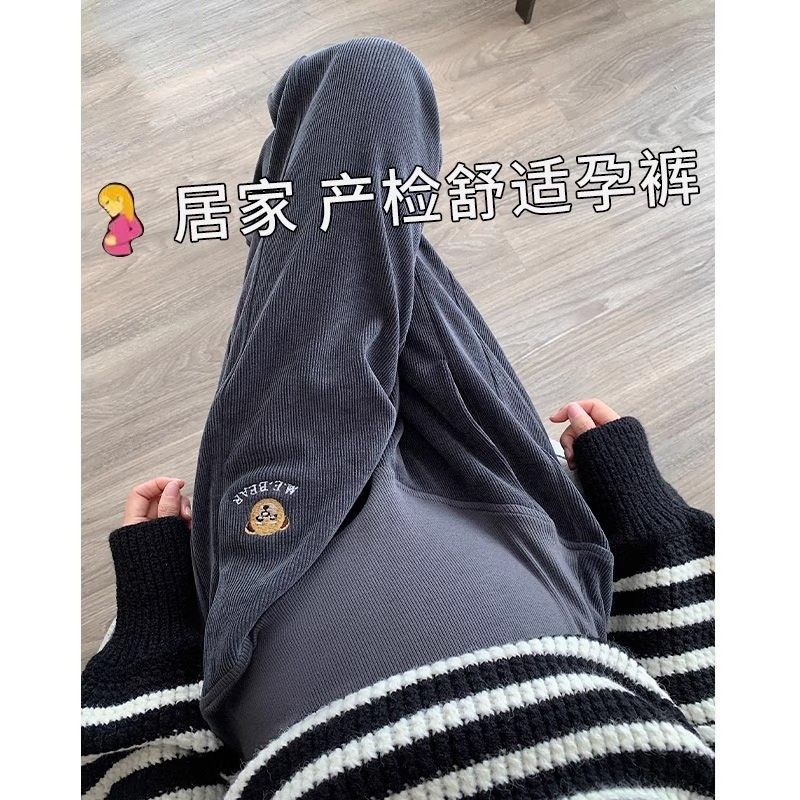 孕妇裤子春秋季外穿秋冬加绒外穿阔腿裤糯米裤休闲直筒长裤孕妇装