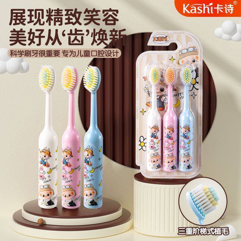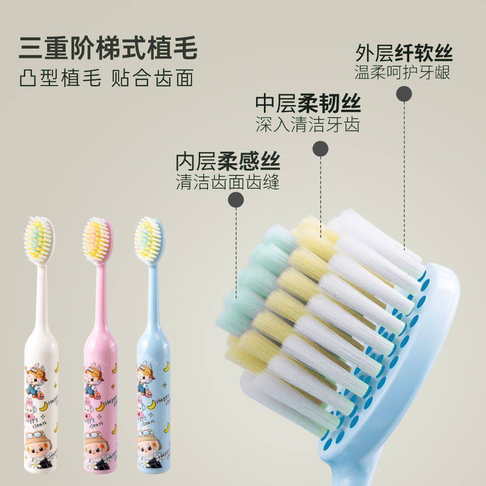 新款山型软毛儿童牙刷凸面护龈3-12岁宝宝圆柱卡通手柄深层清洁