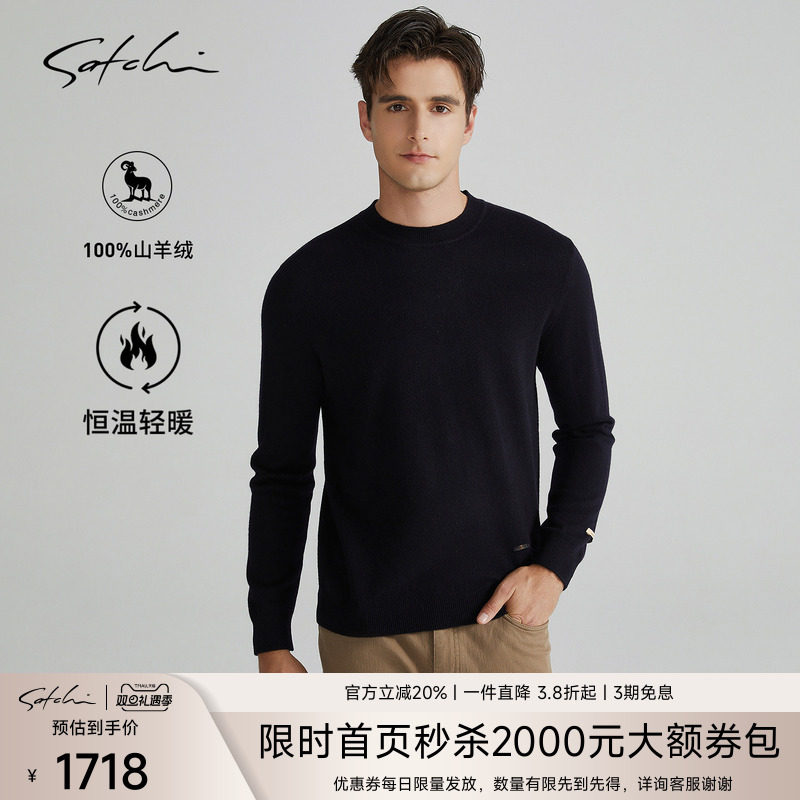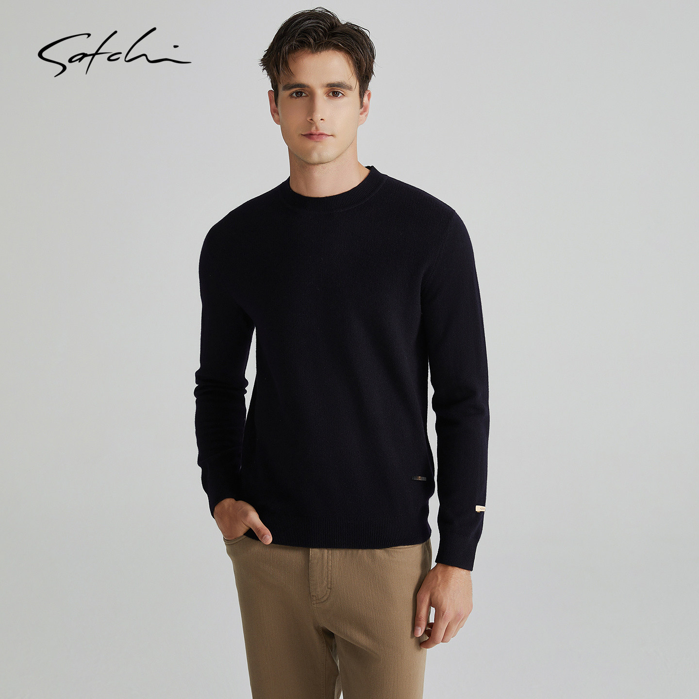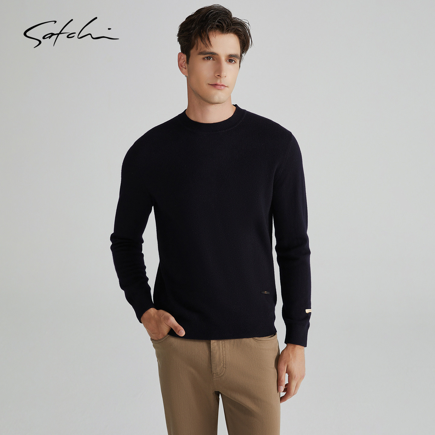 [100%山羊绒]SATCHI沙驰男装男士羊绒衫冬季新款商务休闲圆领套衫