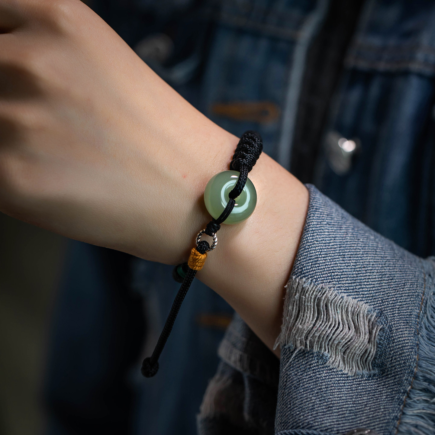 天然和田玉平安扣手链本命年编织手绳玉石手串女手饰男士情侣礼物