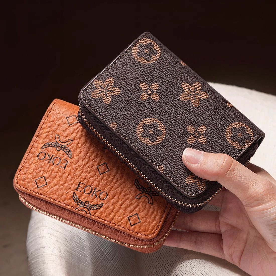 稻草人卡包女士新款证件女式牛皮小巧真皮拉链钱夹小众银行卡钱包