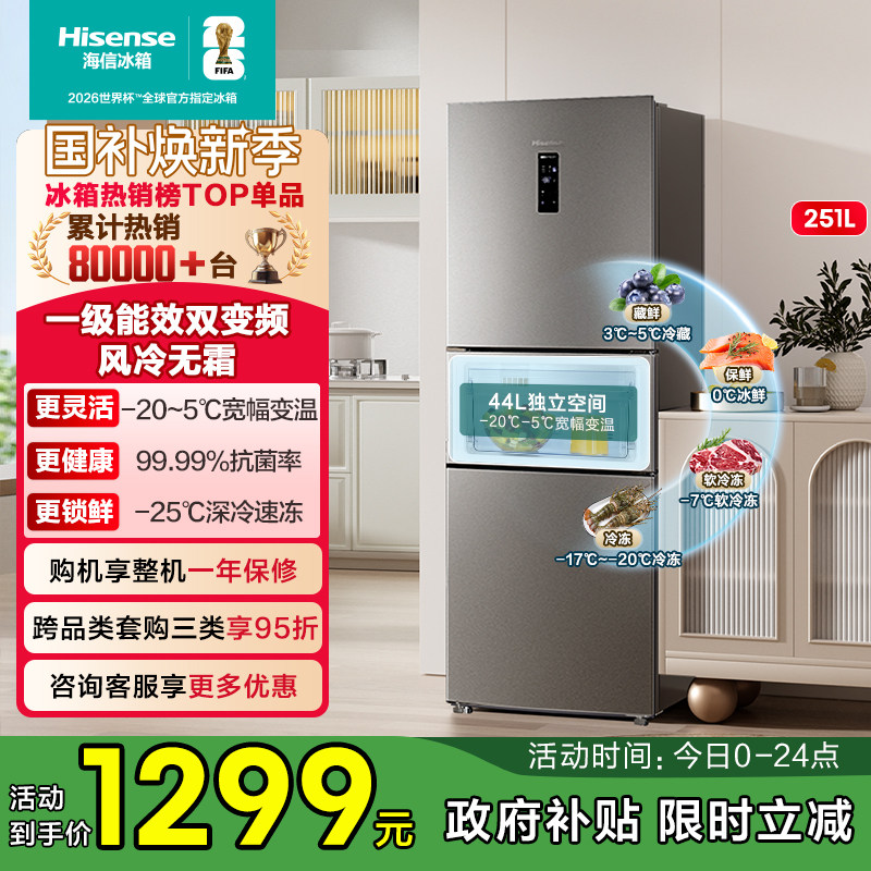 海信251升三开门冰箱一级变频风冷宽幅变温