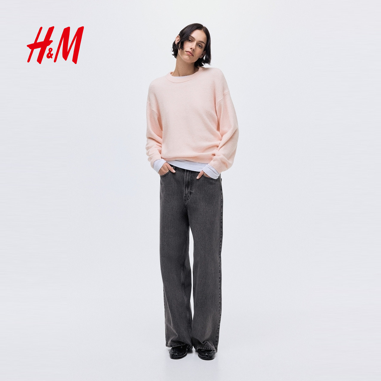 HM女装毛针织衫2025冬季新款内搭打底衫慵懒法式宽松毛衣0983240