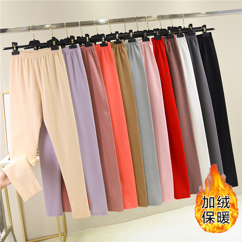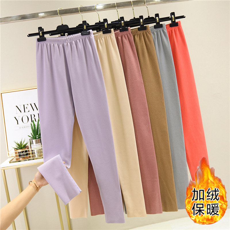 秋冬无痕德绒保暖秋裤女士紧身长裤加绒加厚棉绒裤内穿线裤打底裤