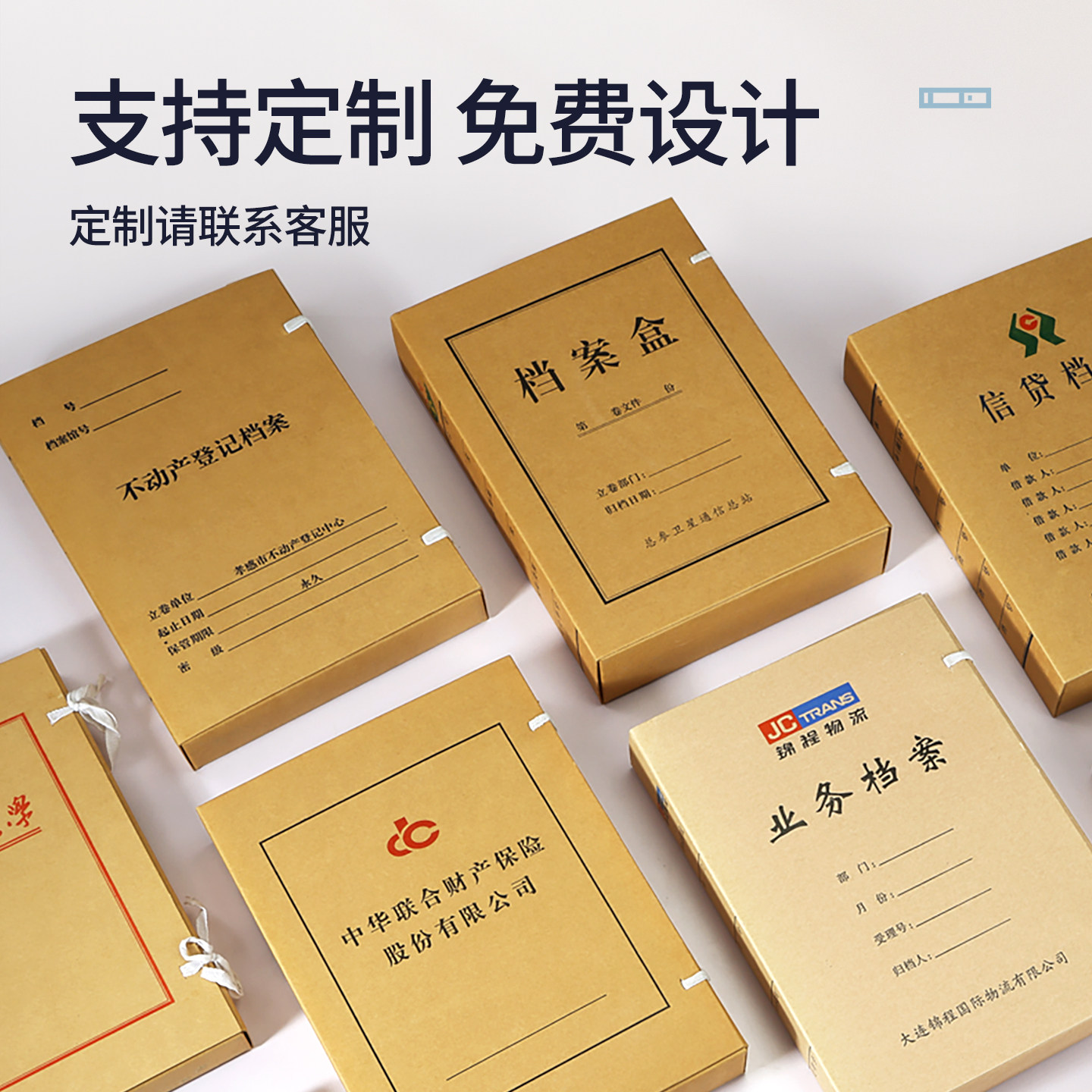 档案盒无酸纸文件资料盒牛皮纸加厚大容量加厚纸质会计凭证a4文件夹收纳盒256厘米办公用品定制订做印logo