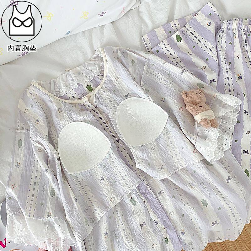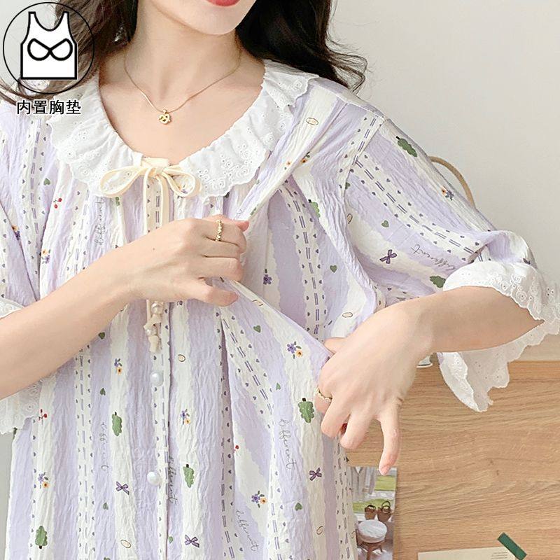 带胸垫奶香风纯棉月子服春秋季产后产妇孕妇睡衣秋冬款哺乳喂奶衣