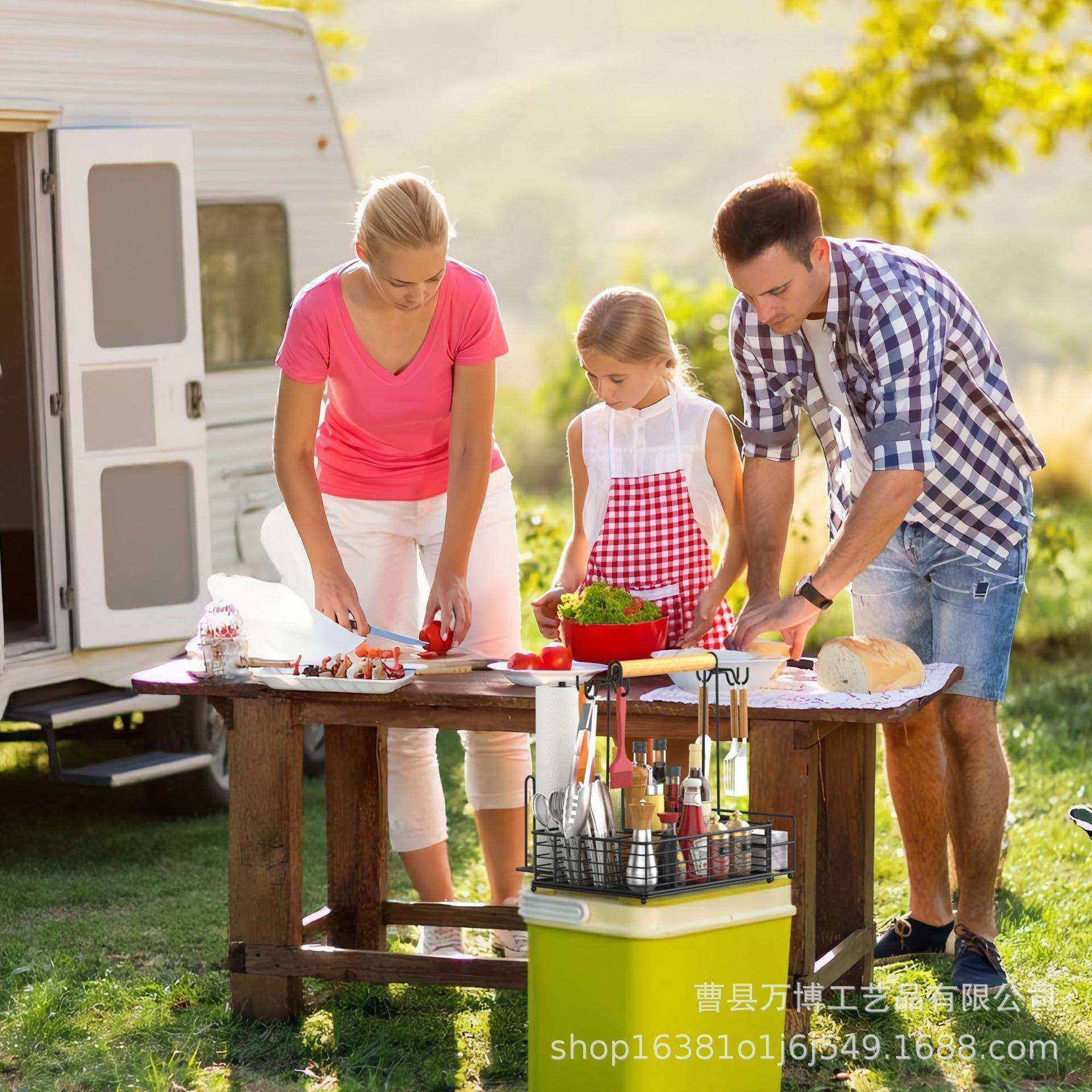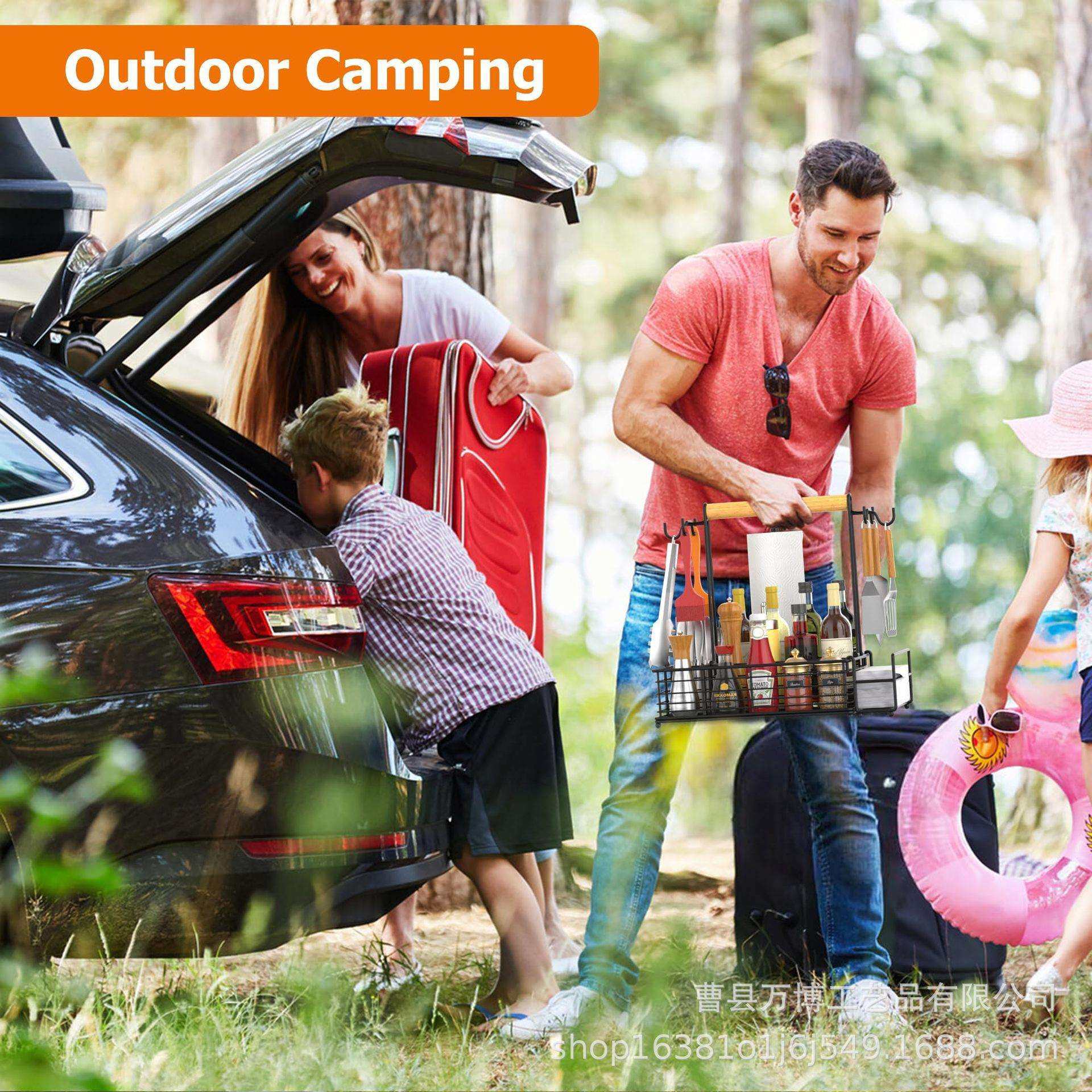 户外铁艺烧烤蓝手提式户外储物蓝简易收纳篮烧烤用品存储筐