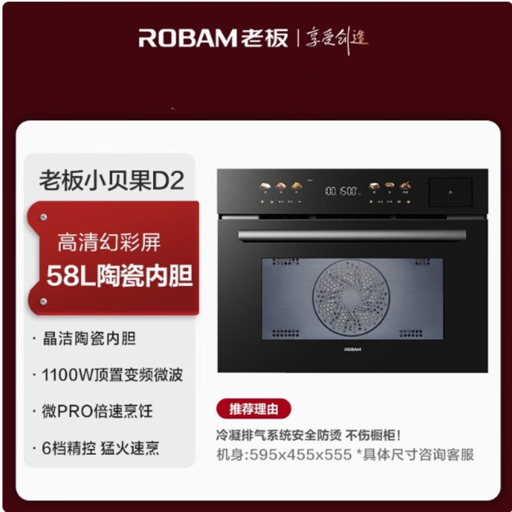老板小贝果D2蒸烤箱微蒸烤炸一体机58L大容量嵌入式微波炉自清洁