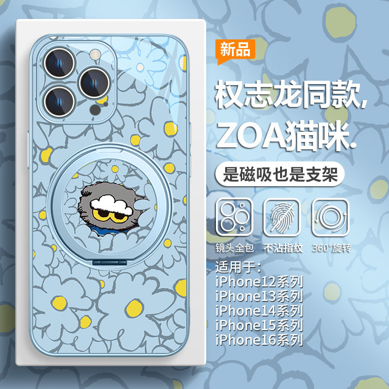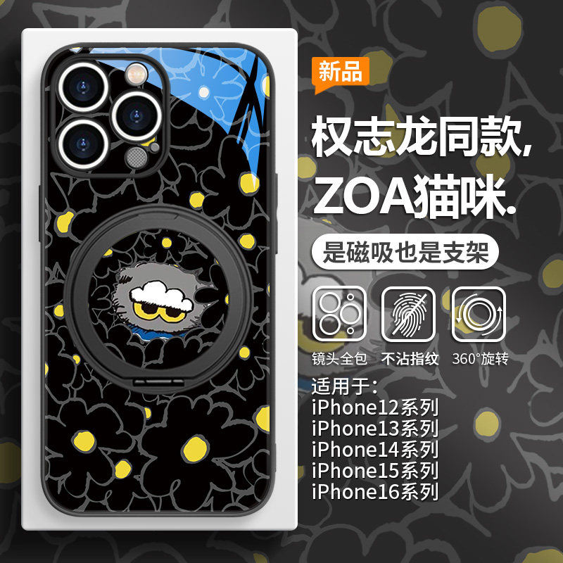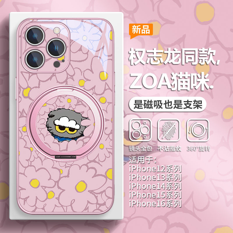 权志龙同款手机壳适用iPhone16promax磁吸带支架苹果15plus小雏菊ZOA猫咪14pro周边13支点壳12magsafe套17air