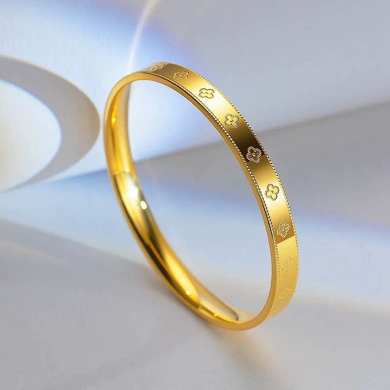 铼金手镯四叶草金包银手镯女款沙金情侣幸运草时尚不掉色首饰