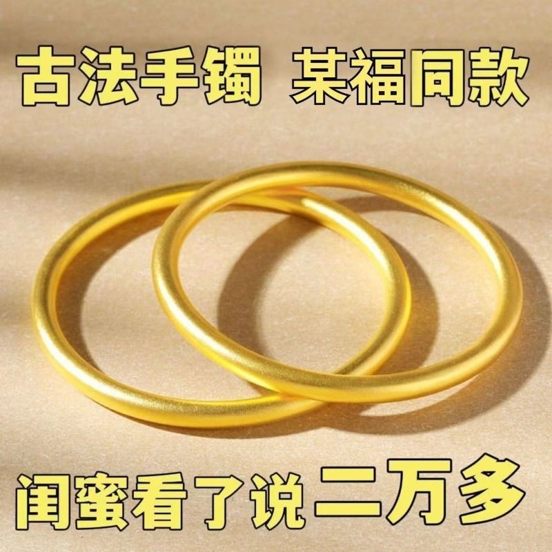 【永不掉色】古法越南沙金传承手镯磨砂哑光手镯女黄金色闭口手环