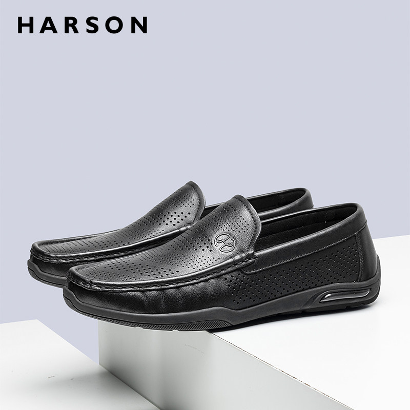 哈森男鞋夏透气乐福鞋驾车商务休闲皮鞋男士舒适真皮豆豆鞋一脚蹬