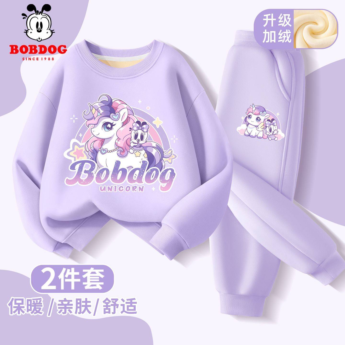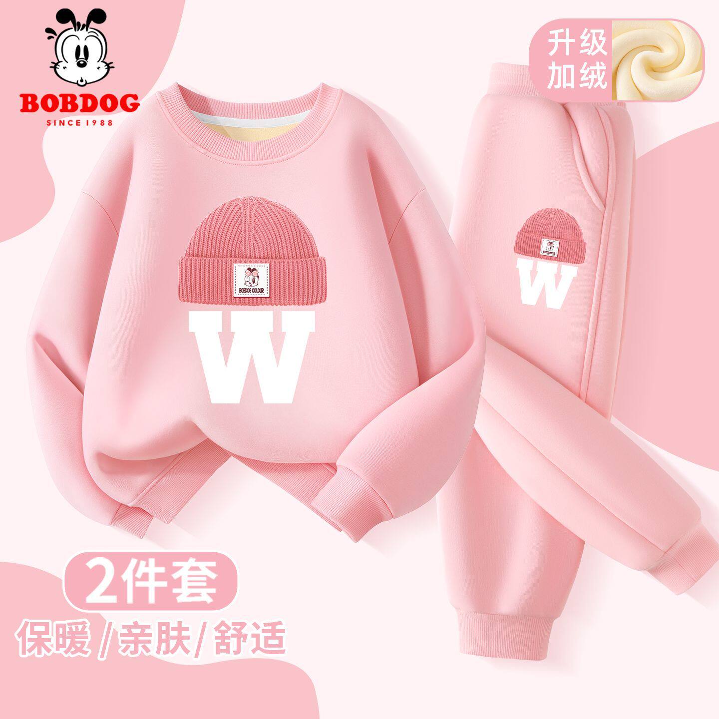 巴布豆女童加绒套装秋冬2025新款儿童加厚百搭卫衣中大童运动卫裤