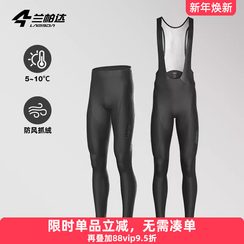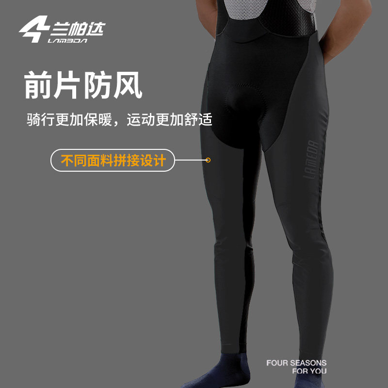 兰帕达 0-10度 防风抓绒保暖秋冬自行车骑行裤男公路背带长裤风凌