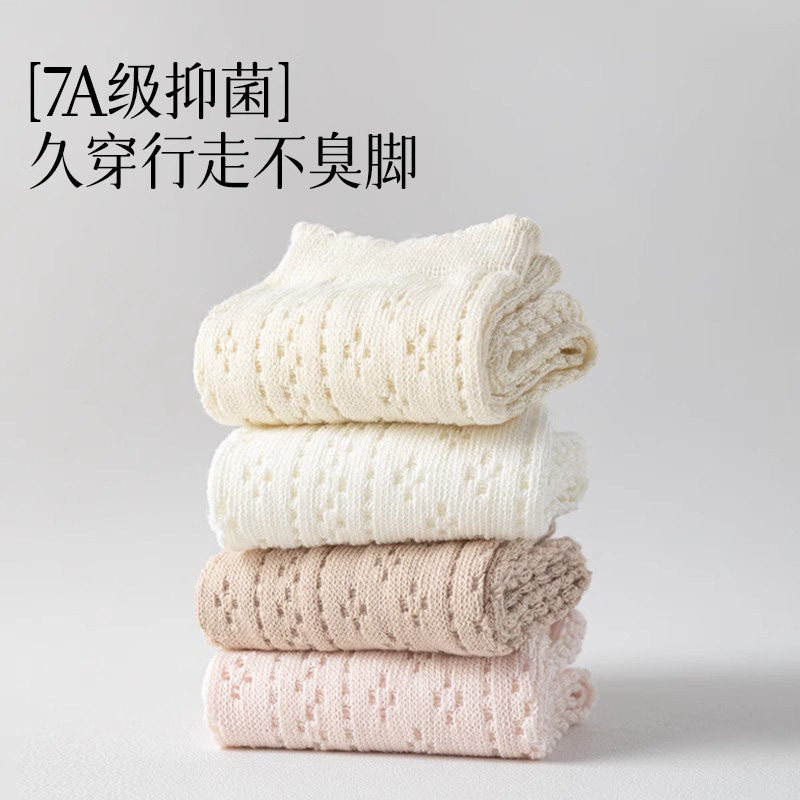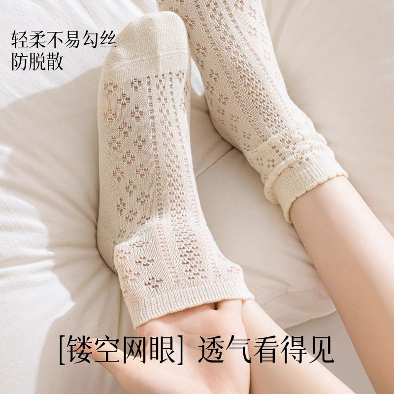 无骨花边袜子女2026新款爆款春夏纯色棉中筒袜薄款网眼女士长筒袜