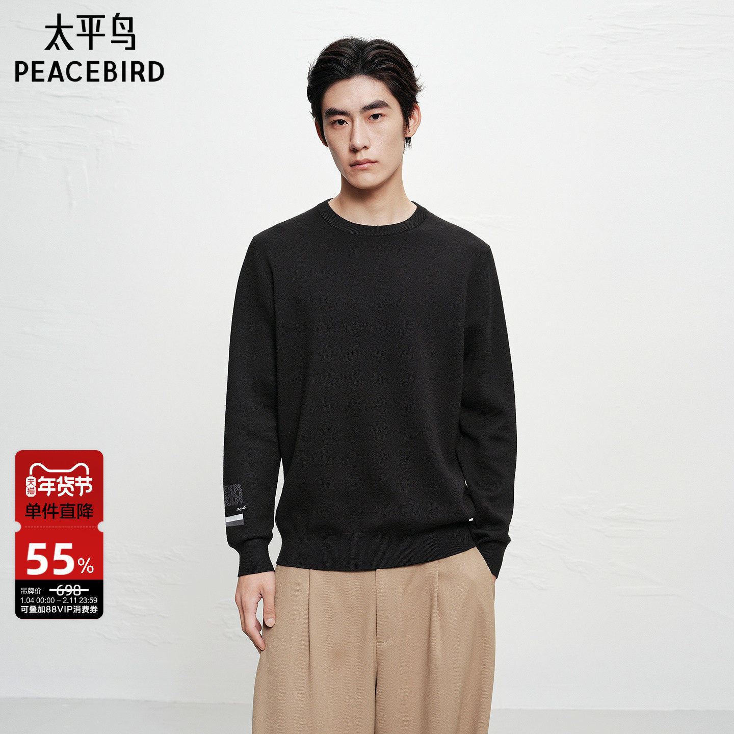 太平鸟男装休闲毛衣时尚毛套衫保暖休闲毛衫时尚袖口提花羊毛毛衫