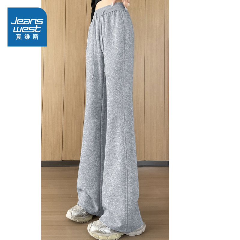 SIINSIIN加绒卫裤女2025新款阔腿运动裤休闲长裤冬季白色直筒裤子