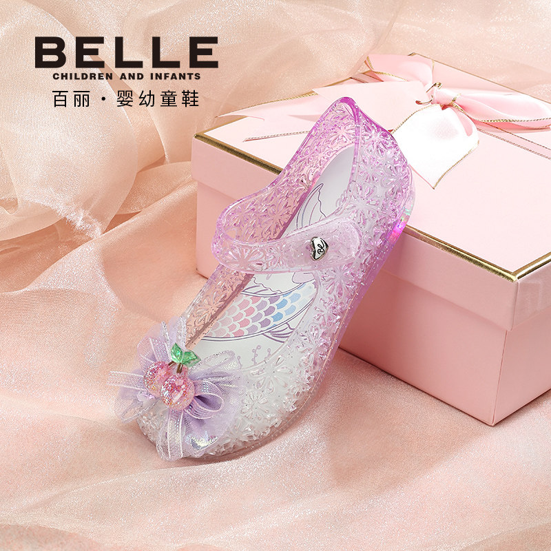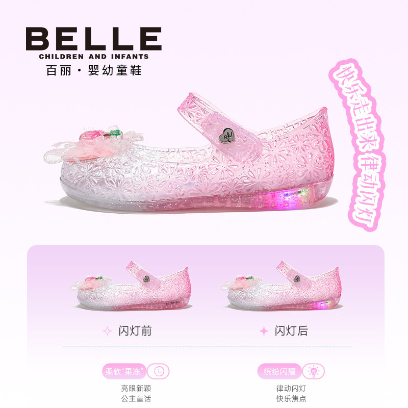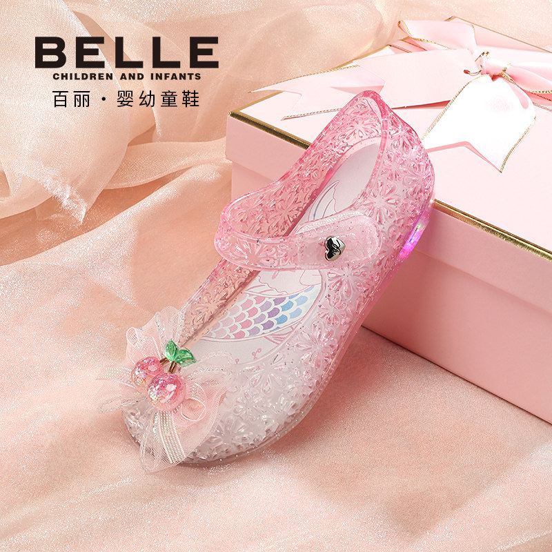 百丽童鞋2026夏季新款女童甜美小樱桃果冻灯鞋宝宝水晶鞋儿童凉鞋