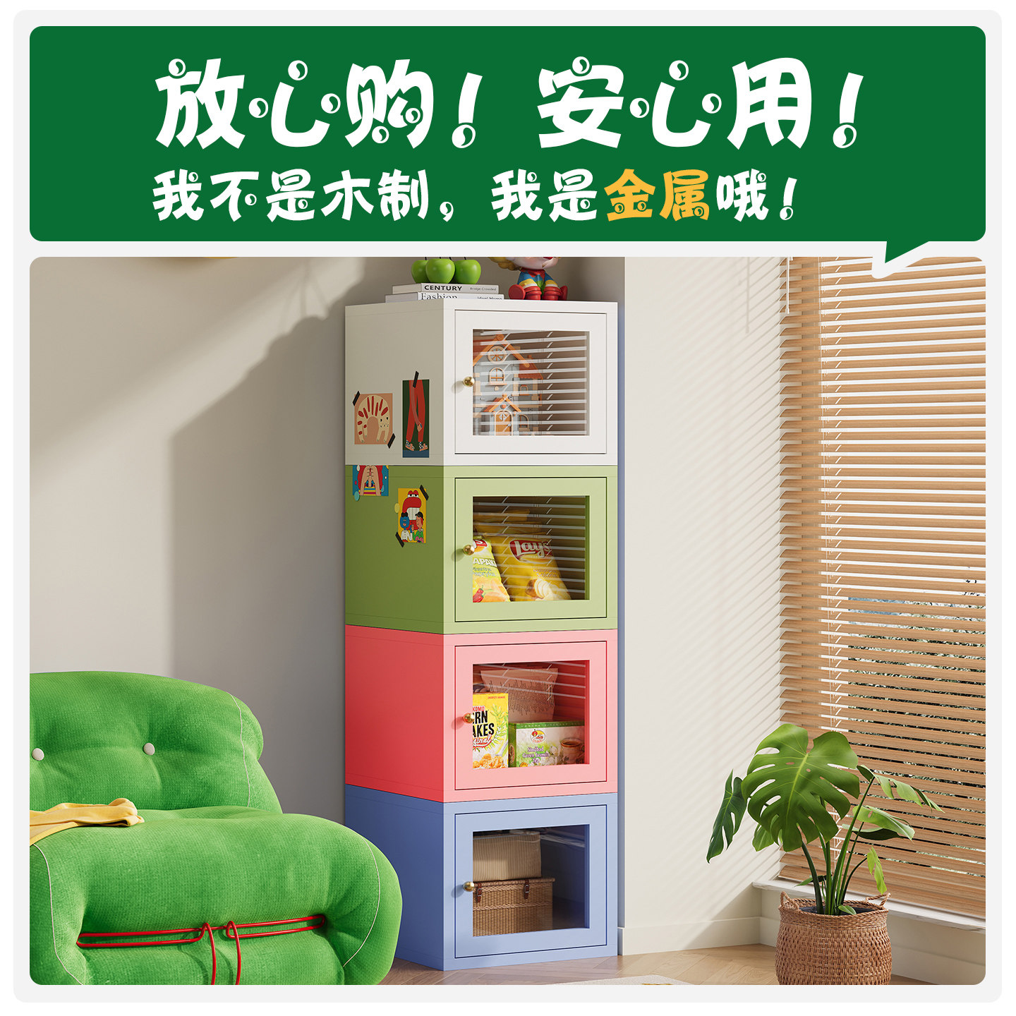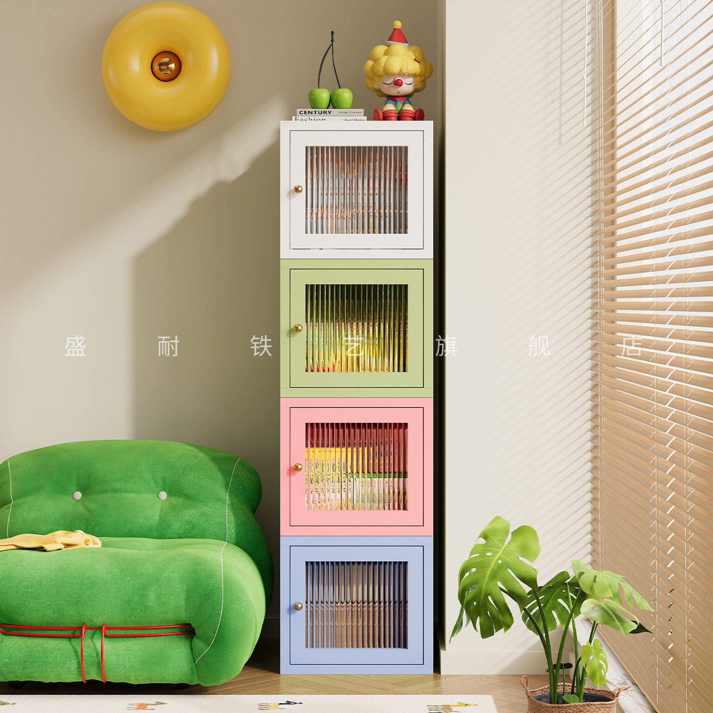 盛耐北欧风飘窗柜钢制收纳储物柜阳台小柜子简约书柜书架置物柜