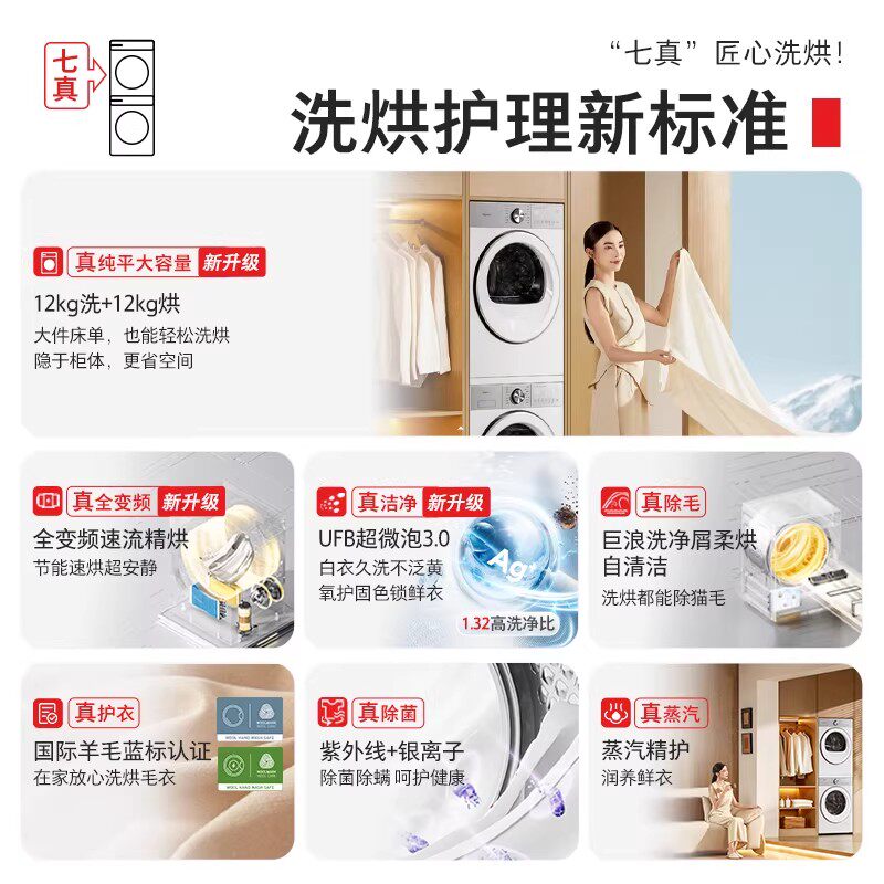 【李佳琦直播间】东芝玉兔2.0Ultra洗烘套装12KG滚筒洗衣机烘干机