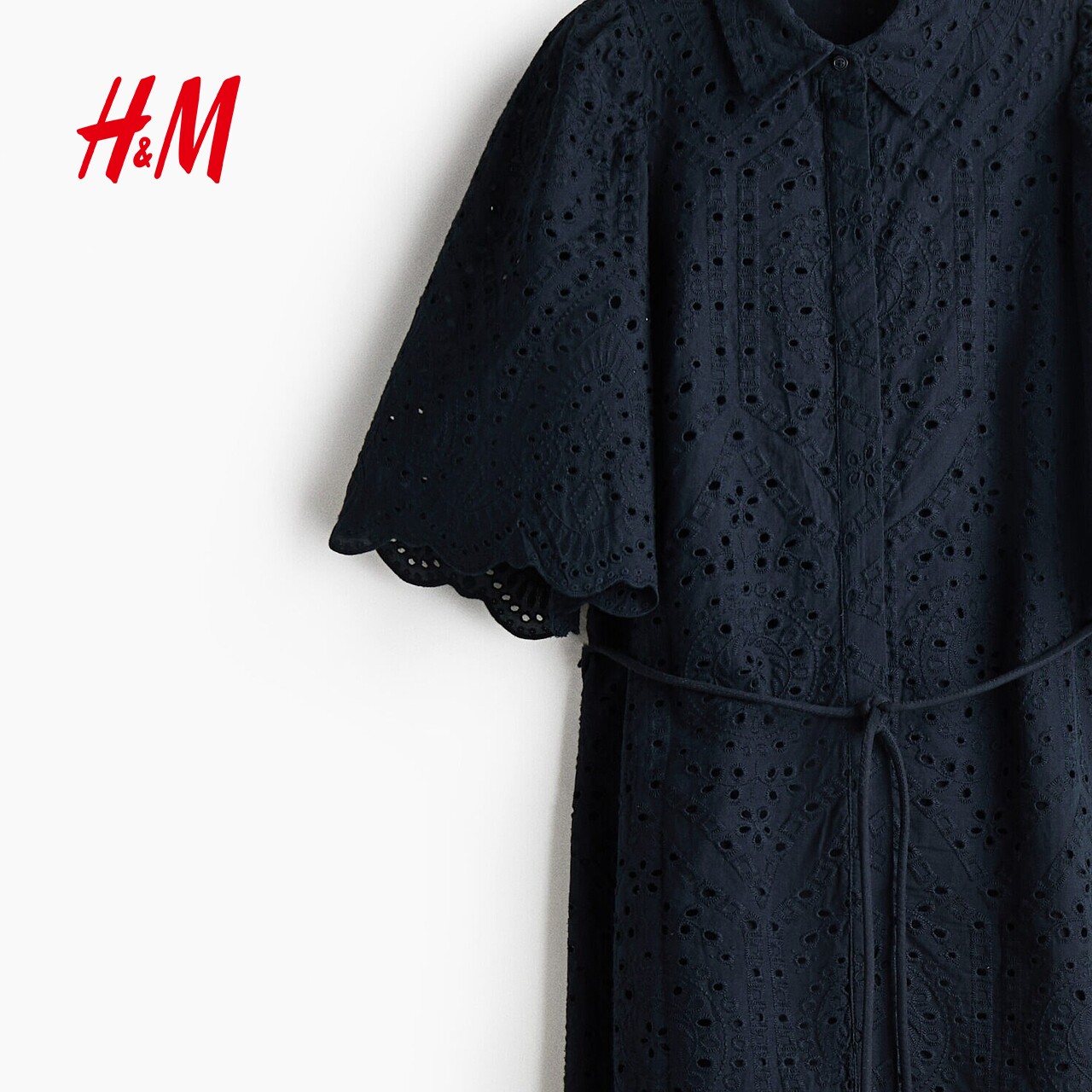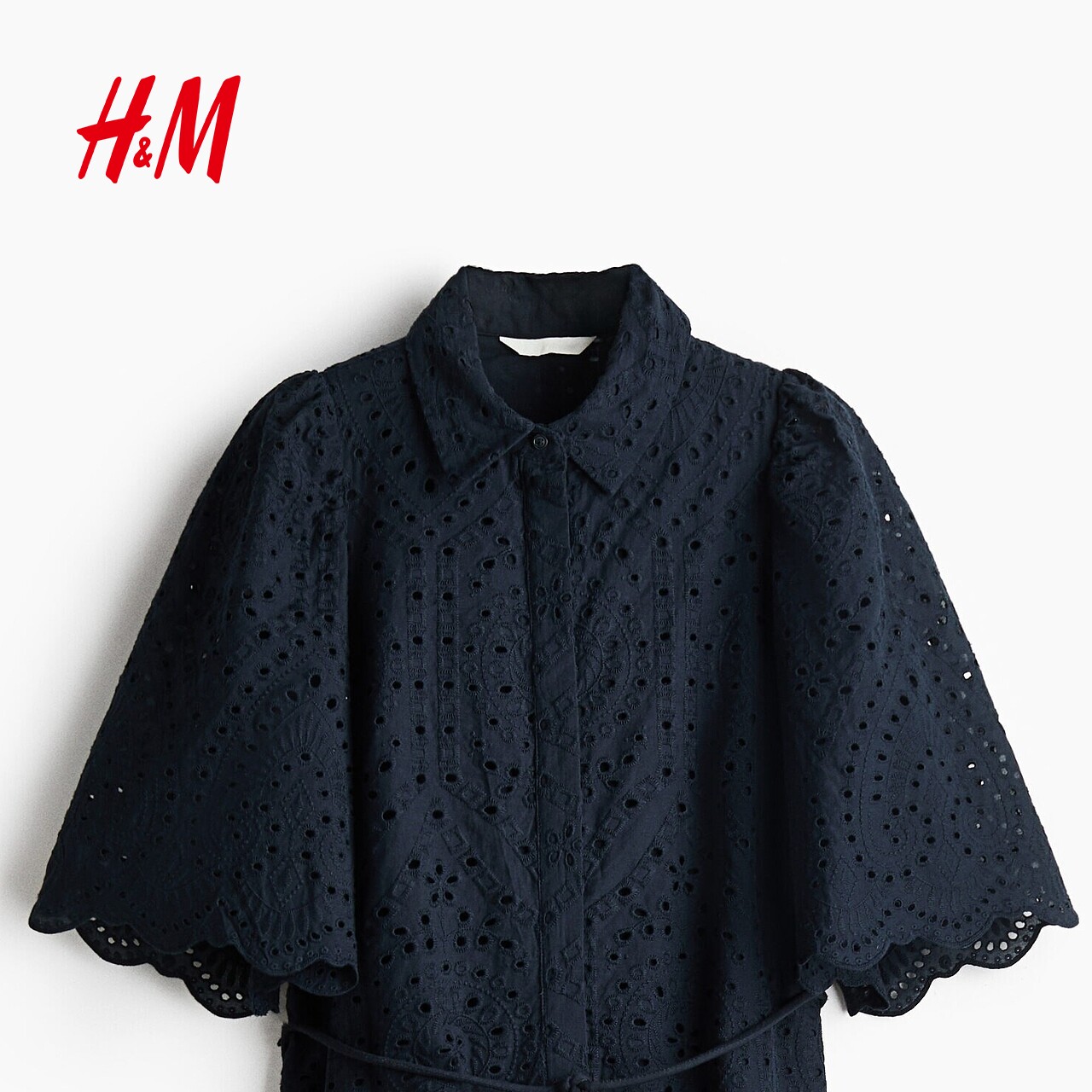 HM2026春季新款女装英式刺绣棉质衬衫裙1335609