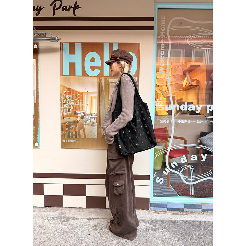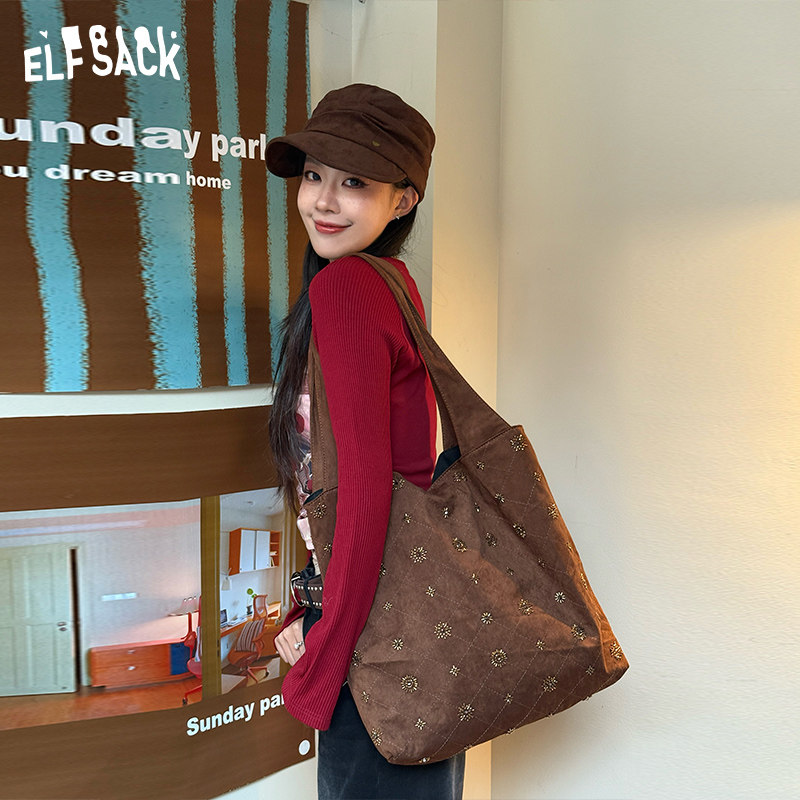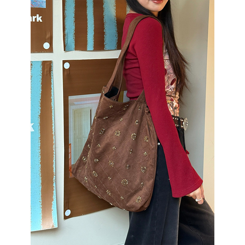 妖精的口袋复古重工钉珠大容量单肩包女2025新款休闲百搭通勤包包