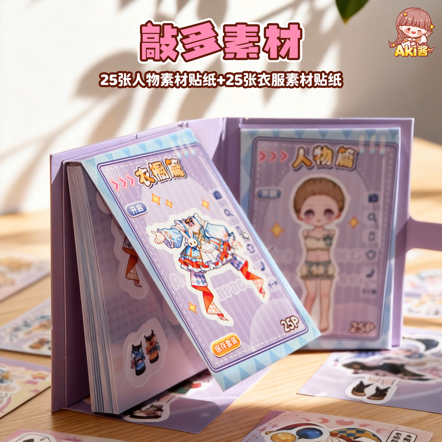 子亦AKI酱换装豆豆本迷你谜语衣橱趣玩穿搭游戏贴纸本卡通可爱女孩DIY手账装饰素材创意贴画儿童益智玩具书