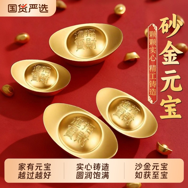 实心沙金元宝金条道具聚财黄铜元宝摆件客厅聚宝盆装饰品开业礼品