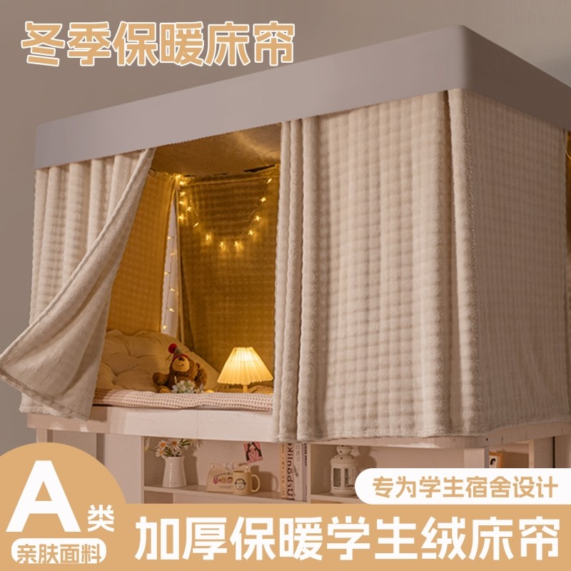 学生宿舍2025新款獭兔毛遮光床帘全包围床幔一体式寝室上下铺专用
