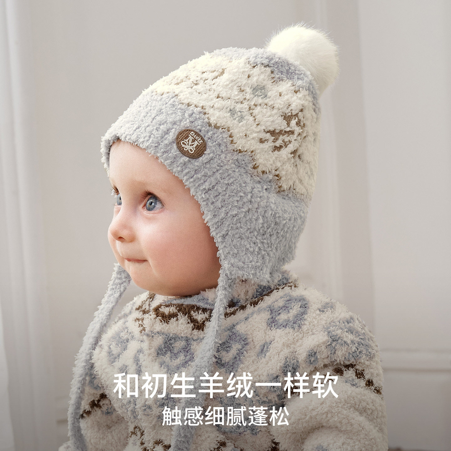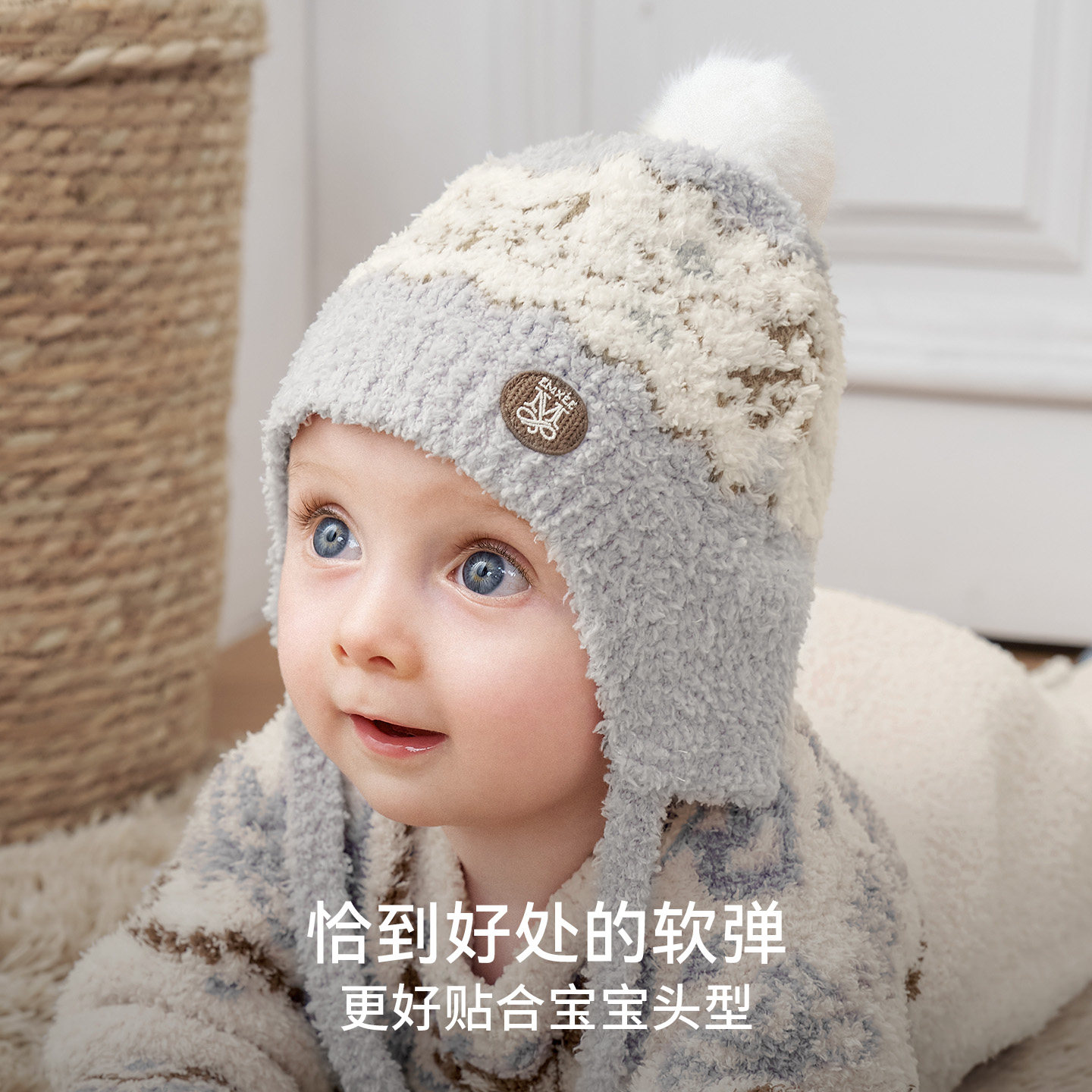 嫚熙婴儿帽子秋冬季小月龄婴幼儿半边绒男女儿童防风保暖护耳帽