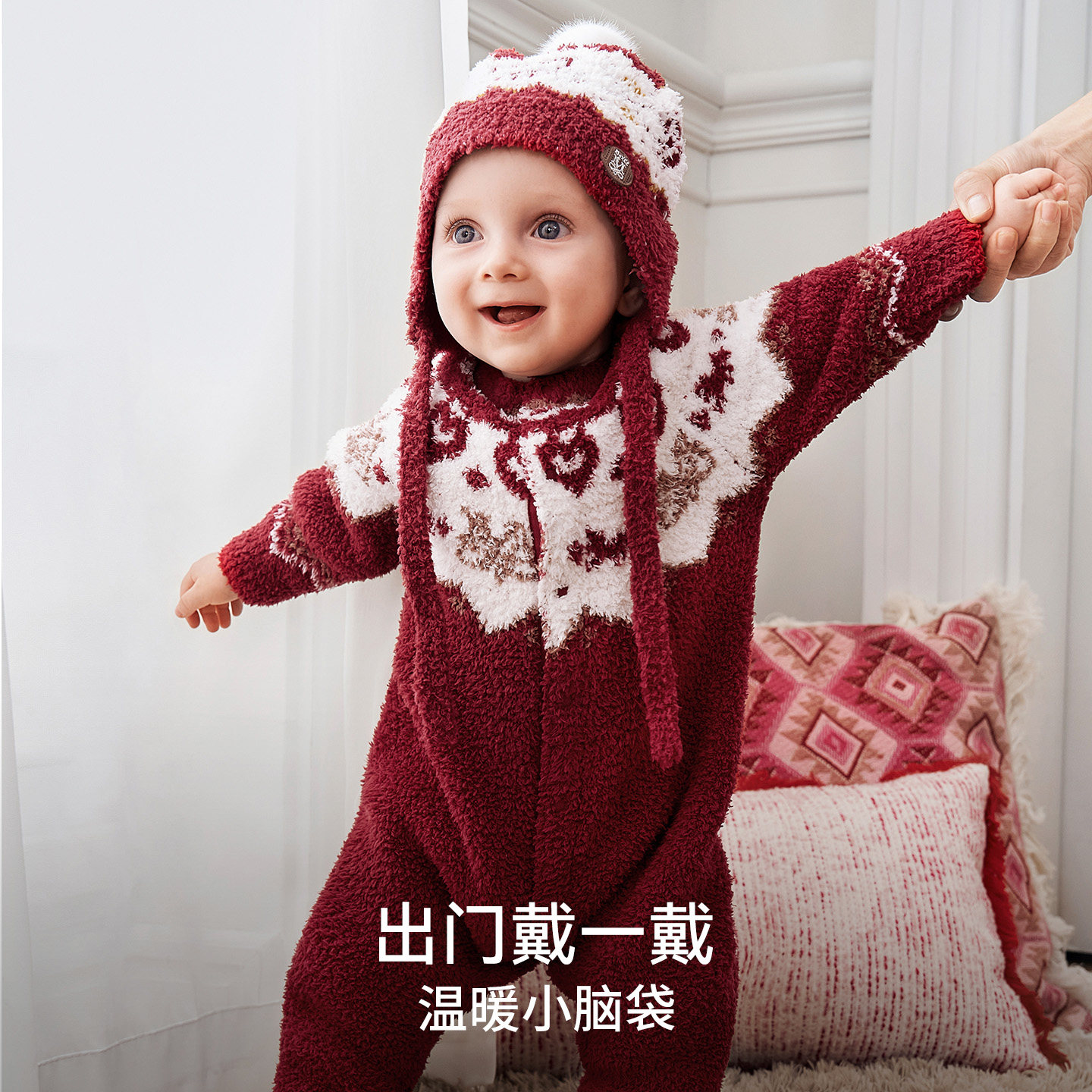 尼多熊婴儿帽子秋围脖一体宝宝毛绒帽防风护耳帽冬季保暖婴幼儿帽