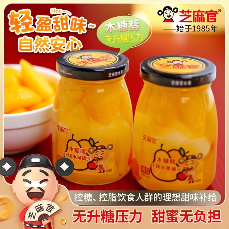 芝麻官木糖醇黄桃罐头水果捞255g*6罐玻璃鲜山楂水果罐头橘子什锦
