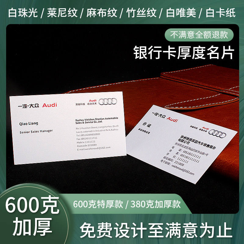 高档600克加厚名片定制作莱尼纸冰白珠光纸铜版纸覆膜防水免费设
