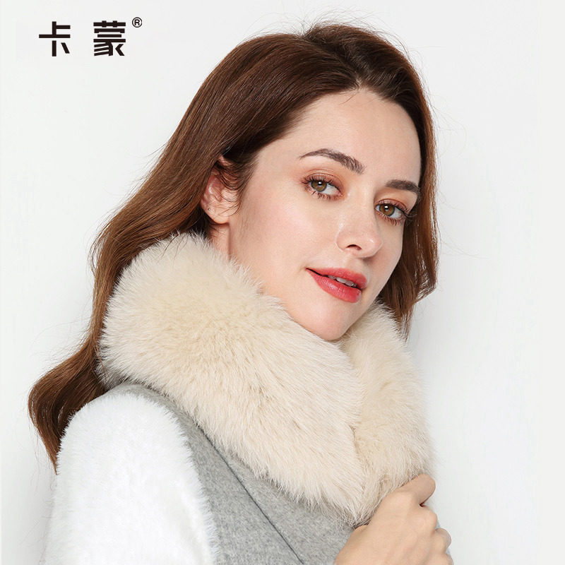 卡蒙狐狸毛围脖女士短款真毛围脖填充保温棉保暖脖套户外防寒围巾