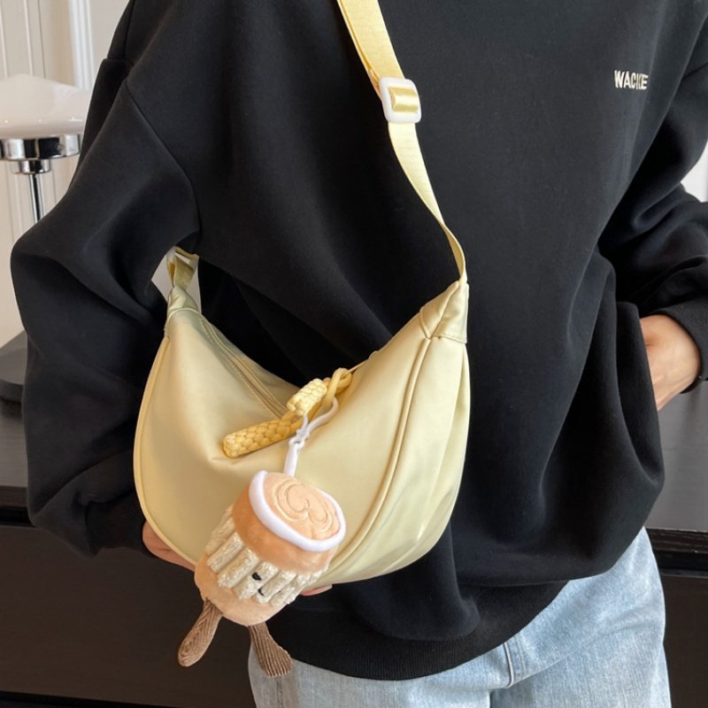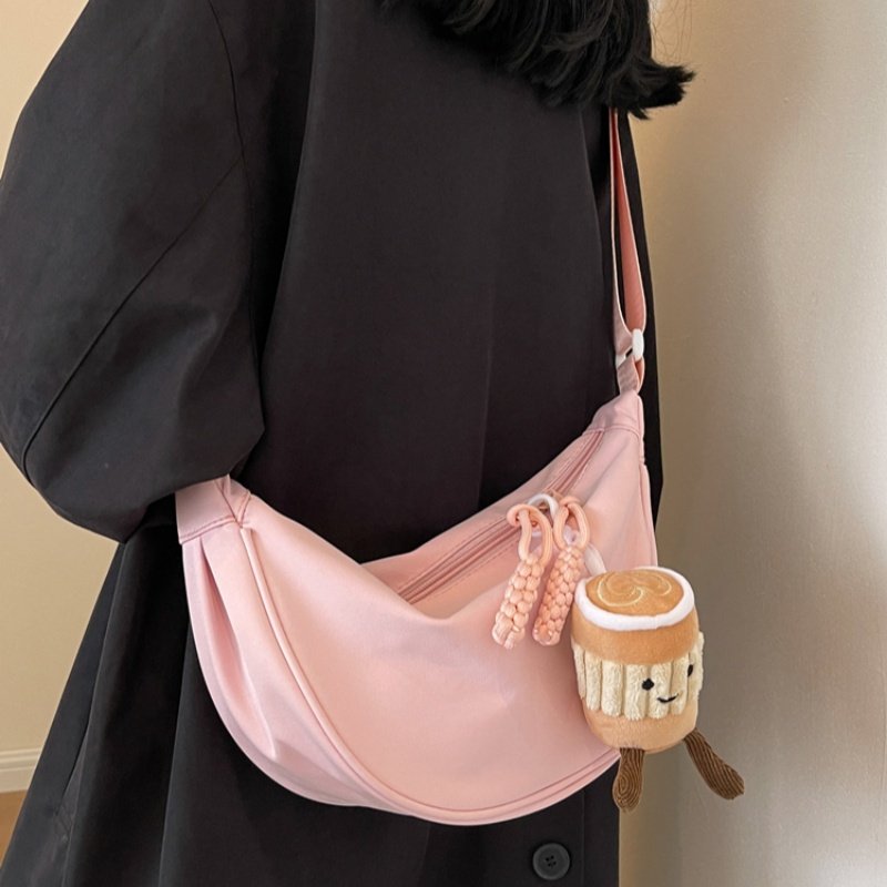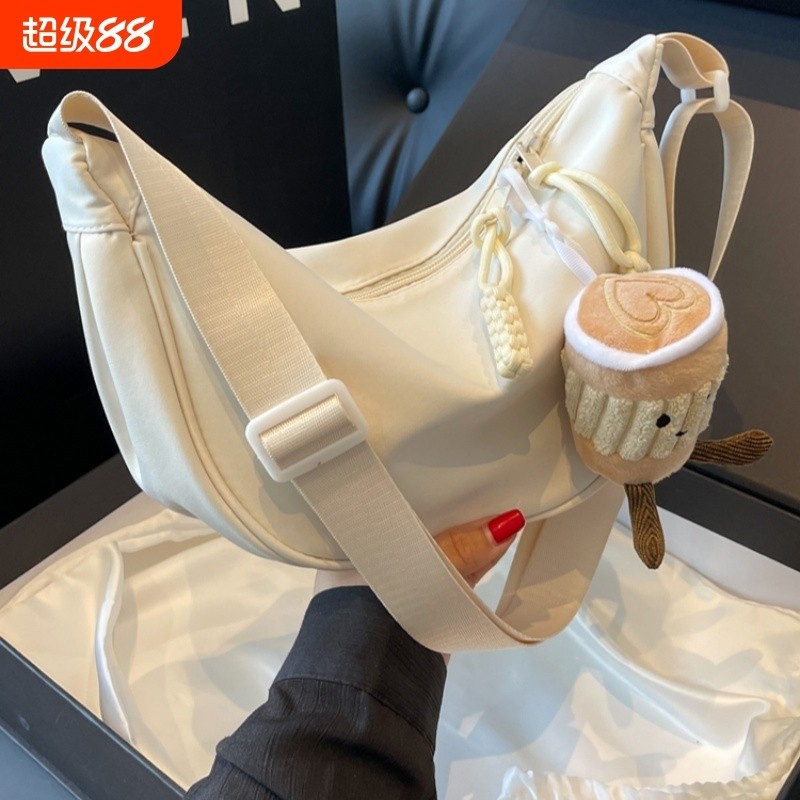 月牙饺子包2025新款百搭斜挎包女休闲轻便单肩小挎包白色红色蓝色