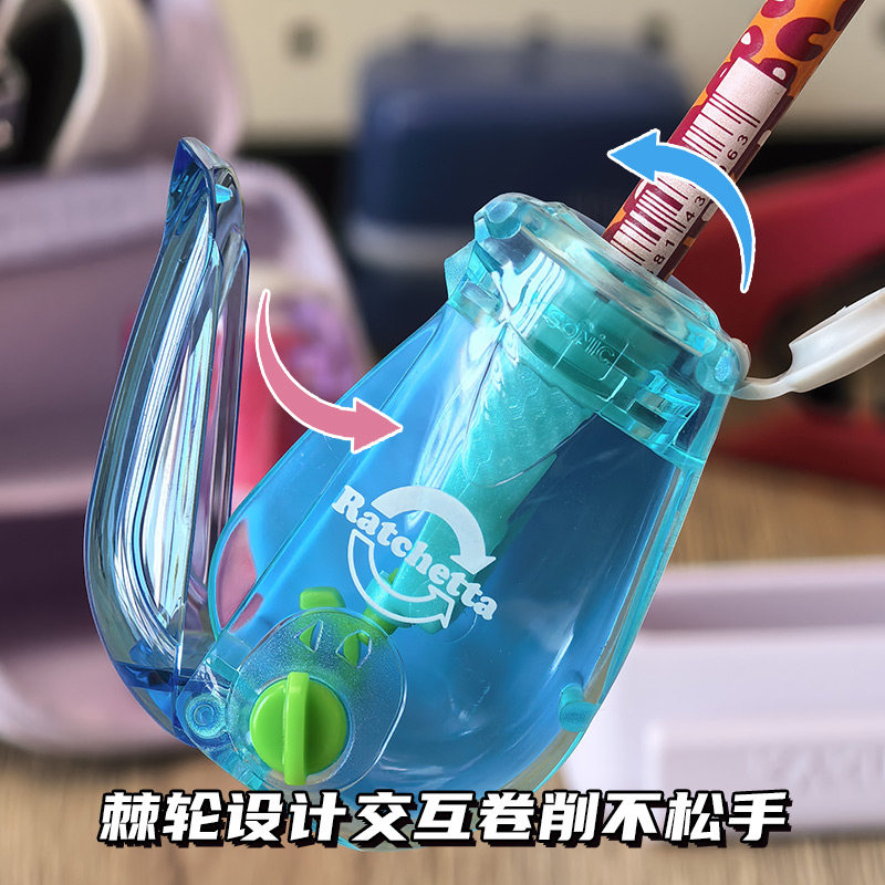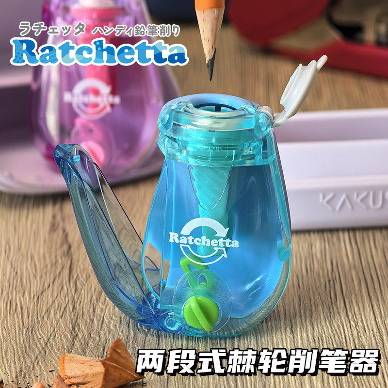 日本索尼克SONIC转笔刀新款棘轮削笔刀小学生双段透明创意卷笔刀