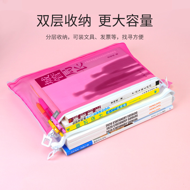 奈多美柔光清新日系ins风学生考研拉链透明纯白色双层拉链袋文件袋收纳作业体检化验单孕检