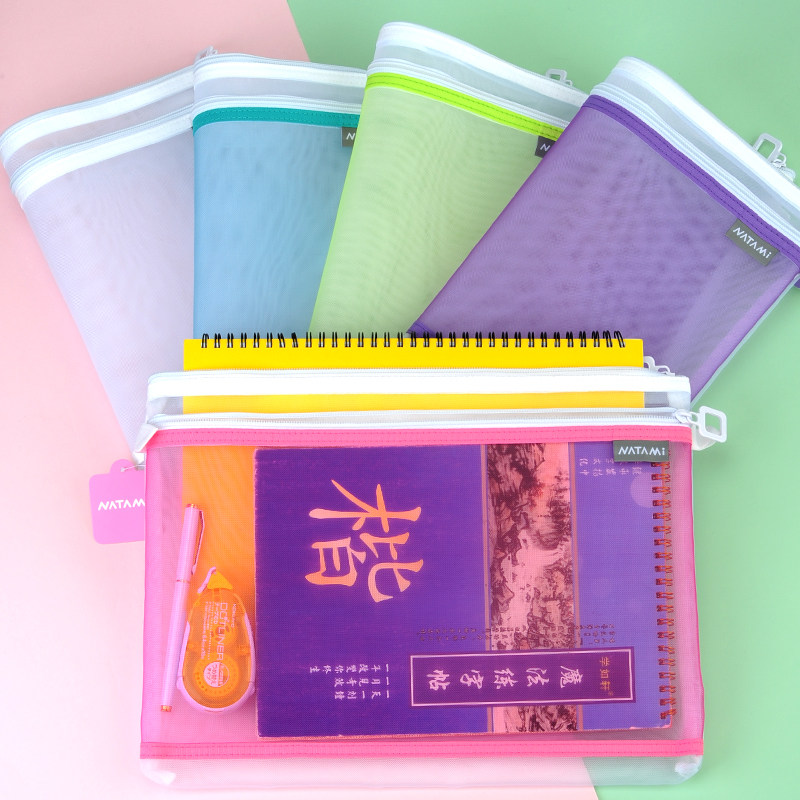 网格文件袋加厚透明网格拉链袋A4试卷收纳袋学生用考试文具袋防水笔袋办公用品批发公文档案袋资料袋包邮