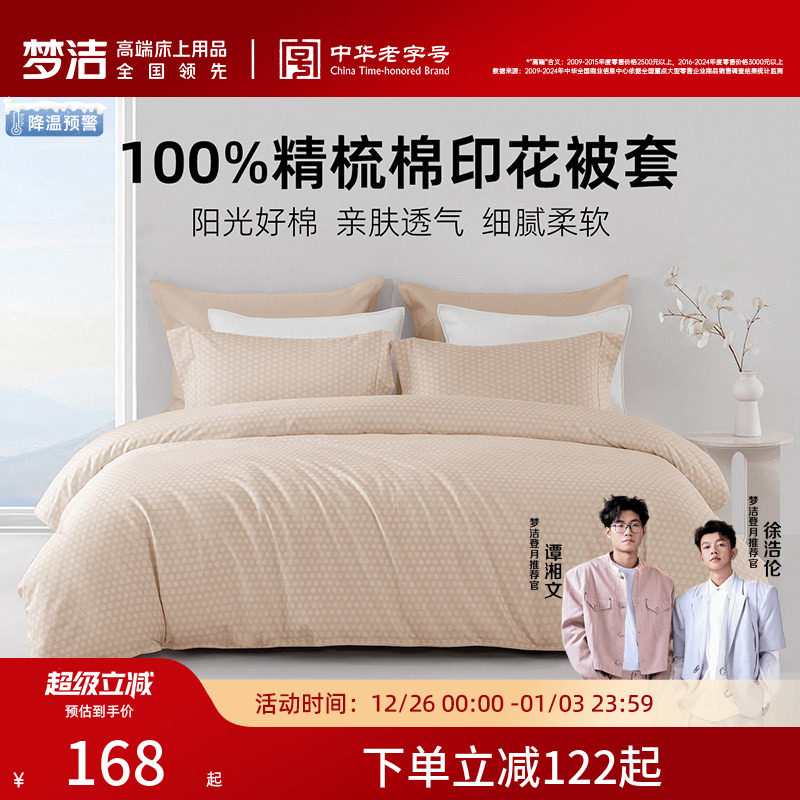 梦洁家纺被套全棉纯棉2025新款夏天学生宿舍单件单人双人散件被罩