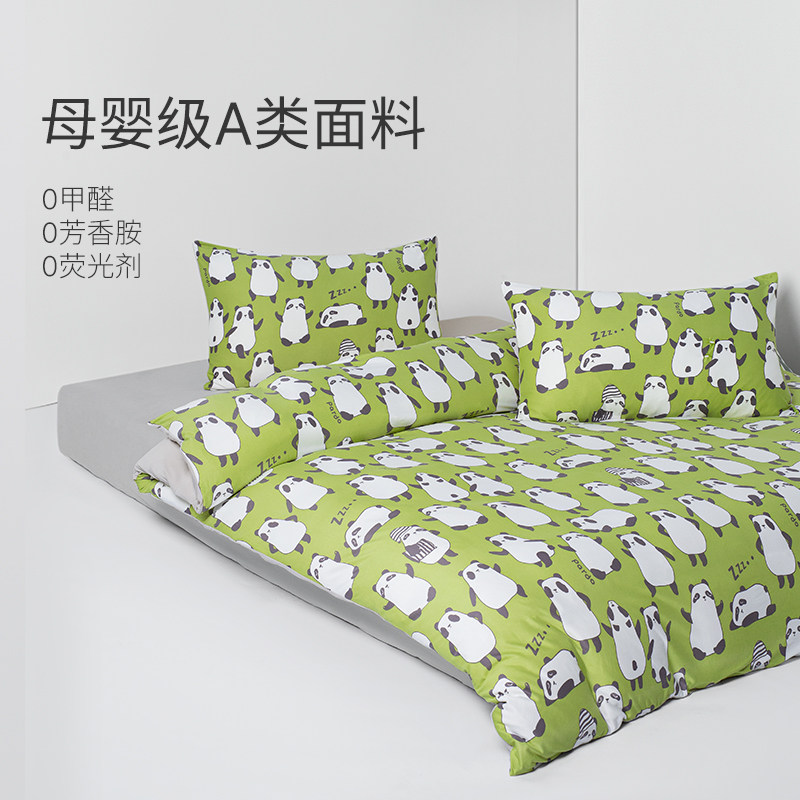 无印良品全棉四件套学生宿舍纯棉卡通儿童被套床单三件套床上用品