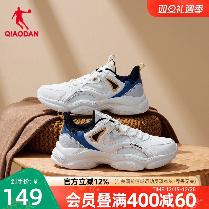 乔丹皮面防水休闲鞋男鞋2025冬季轻便老爹鞋增高厚底革面运动鞋子