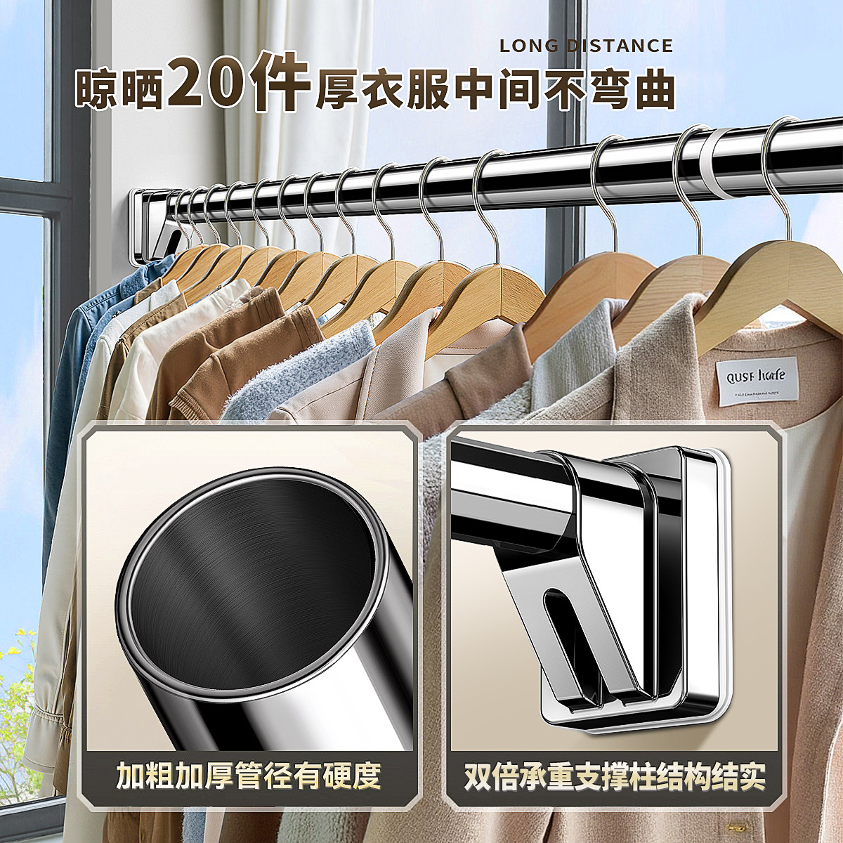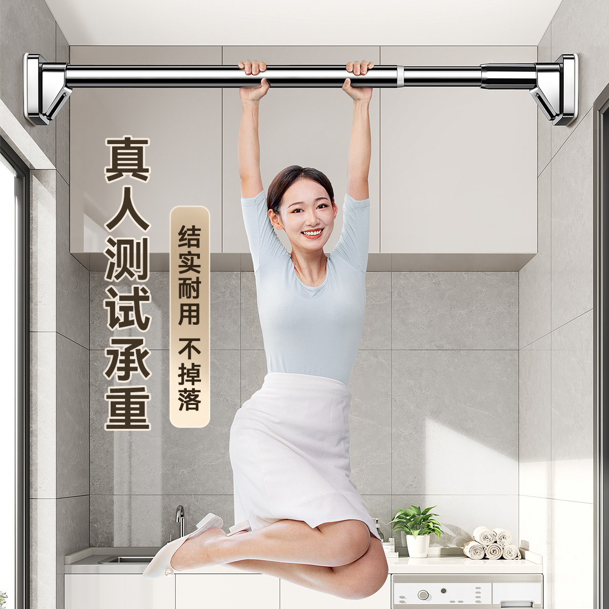 晾衣杆伸缩免打孔窗帘杆阳台不锈钢挂衣杆晒衣架浴室浴帘杆支撑杆