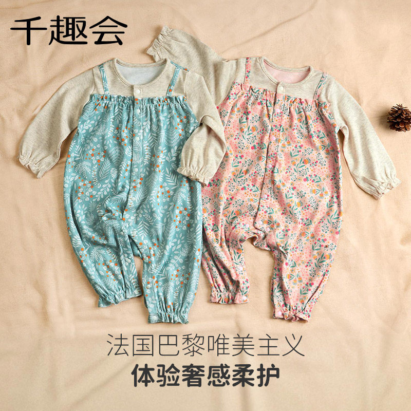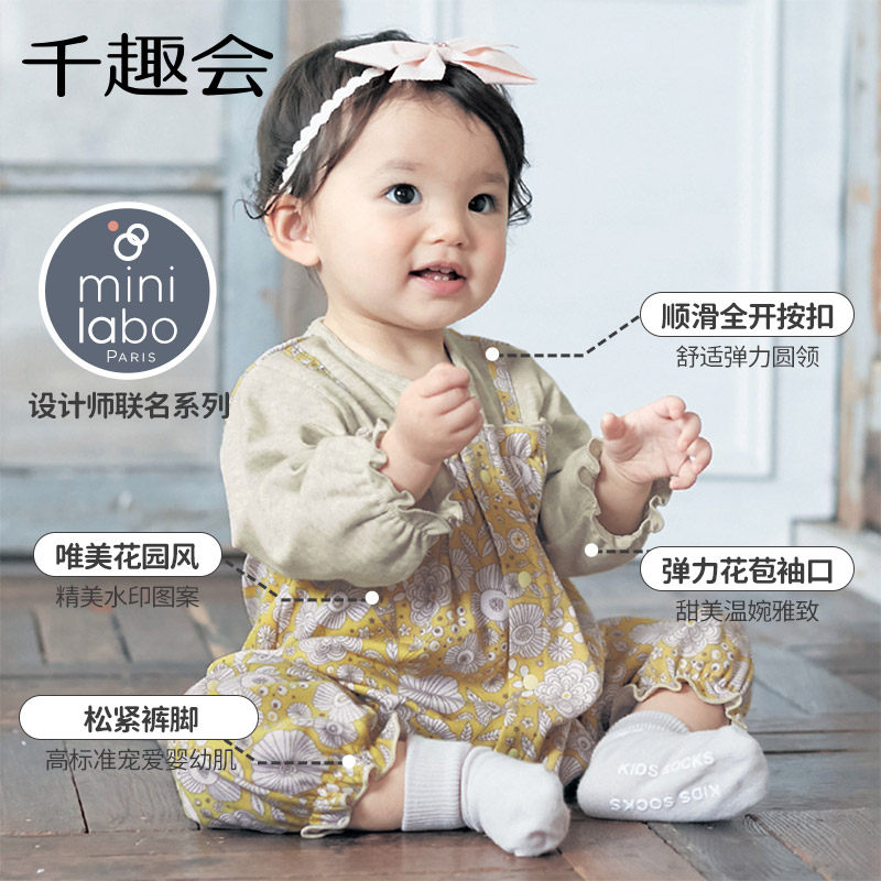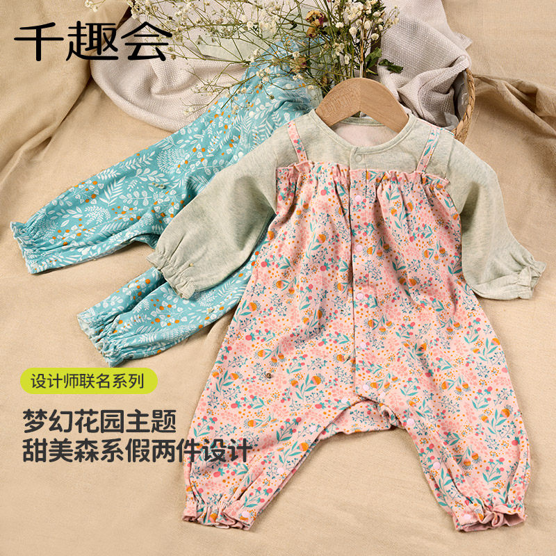 千趣会婴幼儿秋装包屁衣爬服设计师系列花园风森系女宝宝连体衣