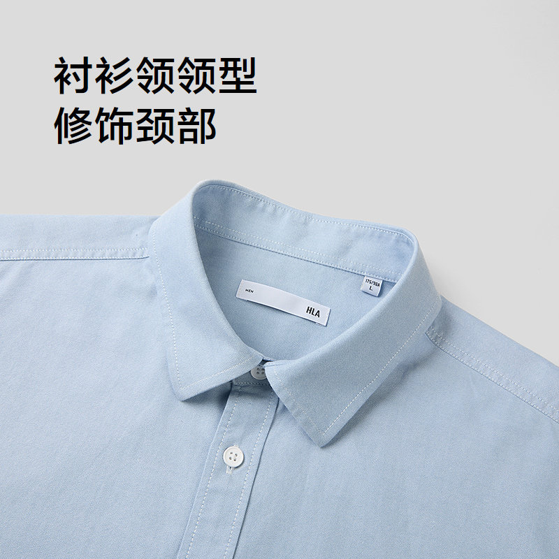 HLA/海澜之家山不在高纯棉牛津纺短袖白色衬衫春夏休闲透气上衣男