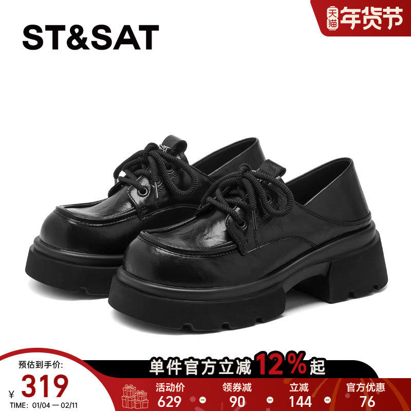 星期六厚底乐福鞋女款2025新款冬季女软底不累脚增高黑色小皮鞋直