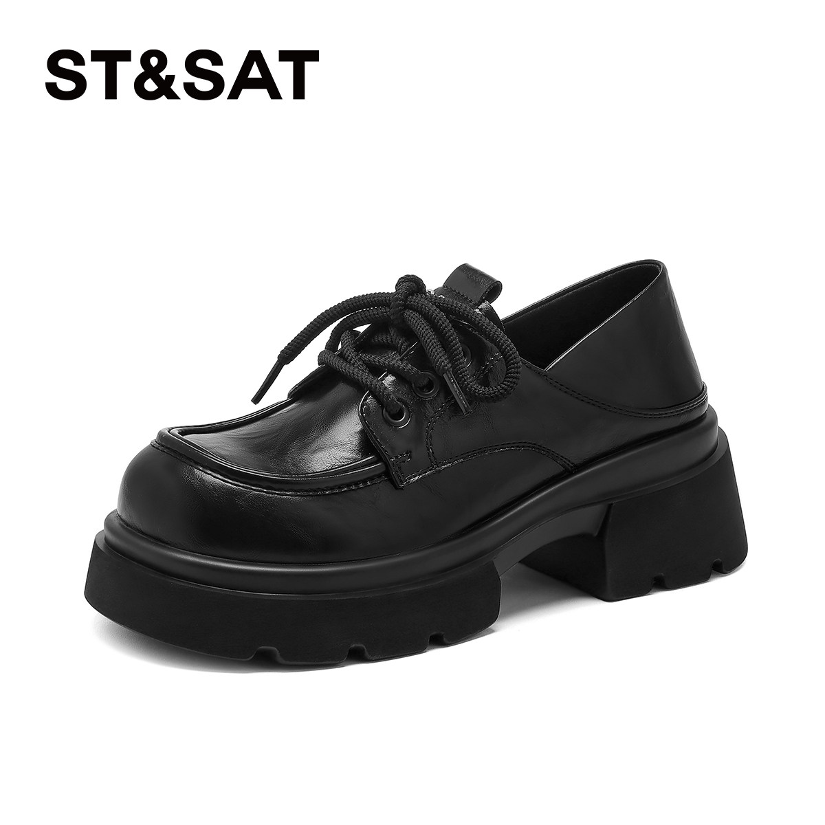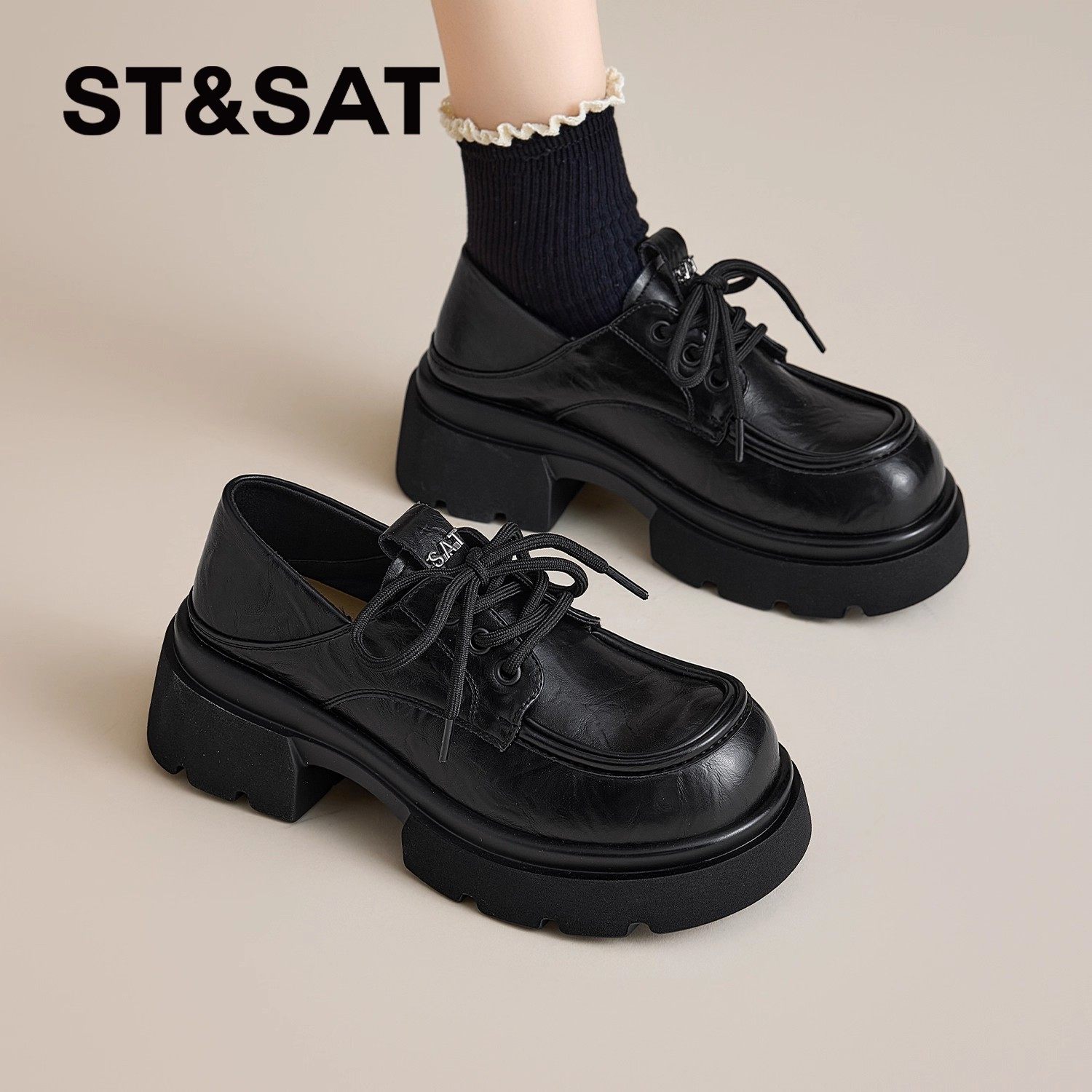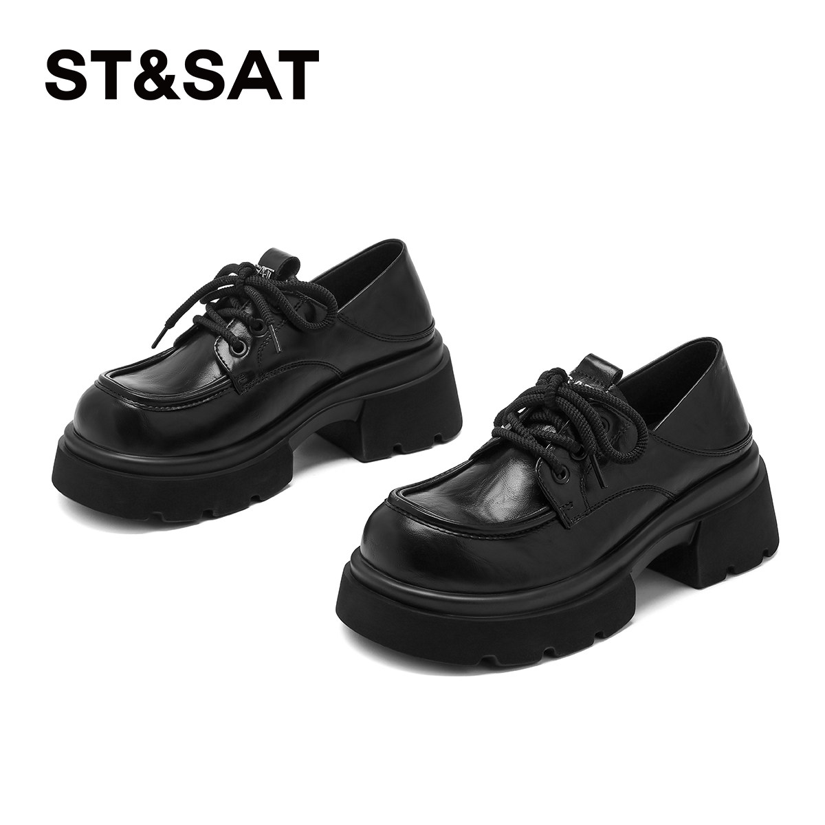 星期六厚底乐福鞋女款不累脚增高黑色小皮鞋