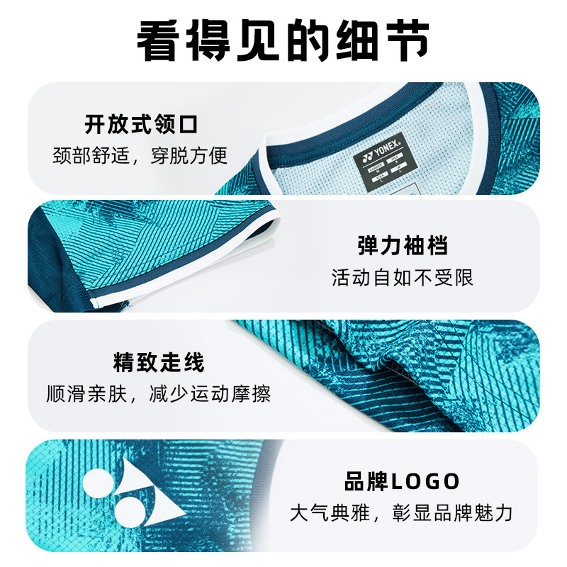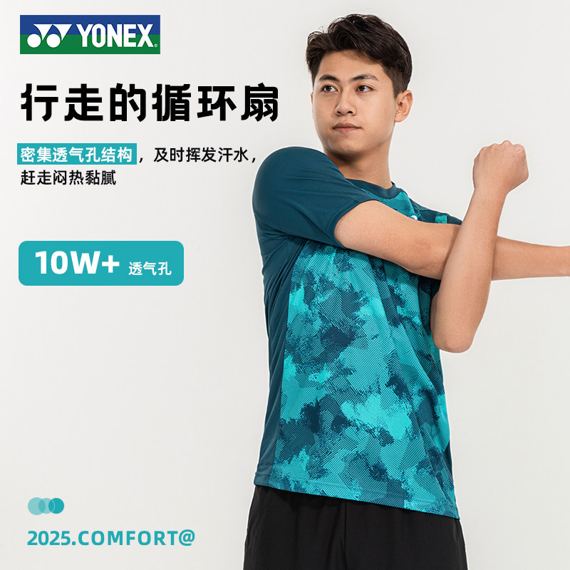 尤尼克斯羽毛球服大赛服25新款运动短袖速干透气亲肤男女款10577