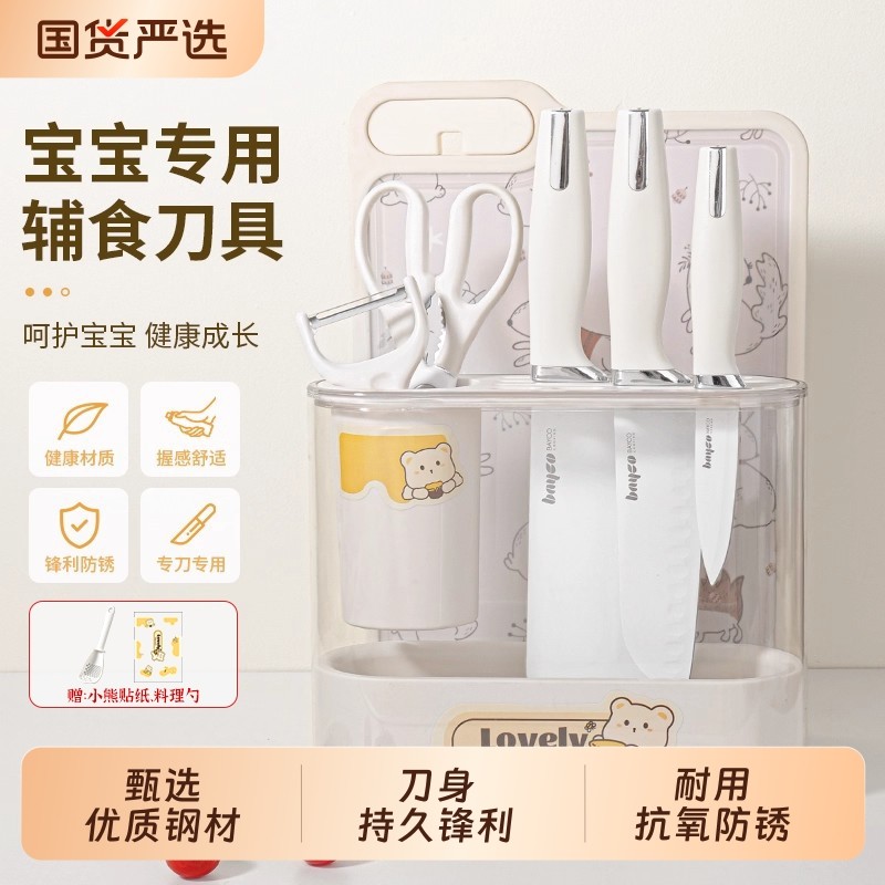 拜格婴儿辅食菜板刀具套装宝宝专用切肉片刀砧板辅食工具全套组合
